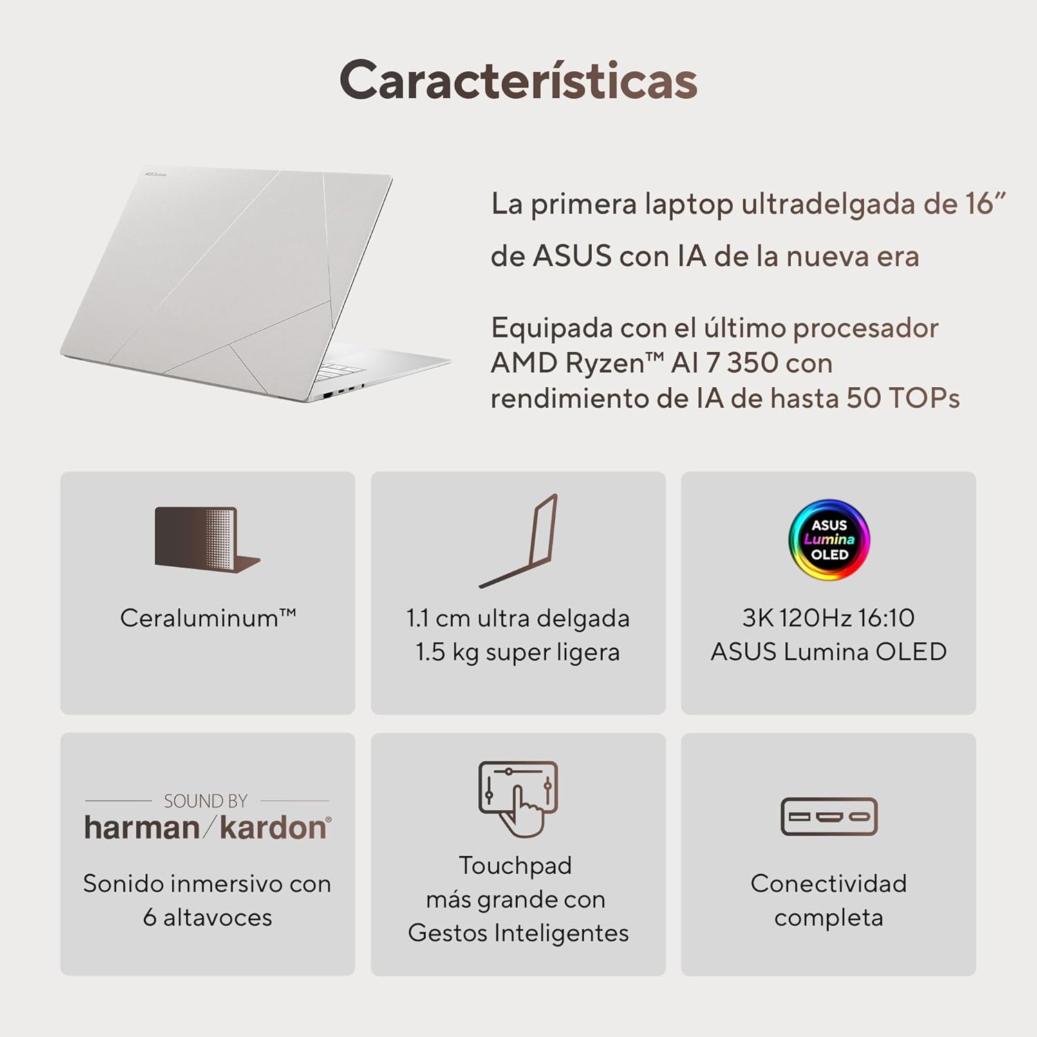ASUS Laptop Zenbook 14/14″ OLED/Intel Core Ultra 5 225H 14 Núcleos/Intel AI Boost NPU hasta 13TOPS/16GB RAM/512GB SSD/Numberpad/Teclado Retroiluminado+ Funda/Servicio y garantía con la marca en México