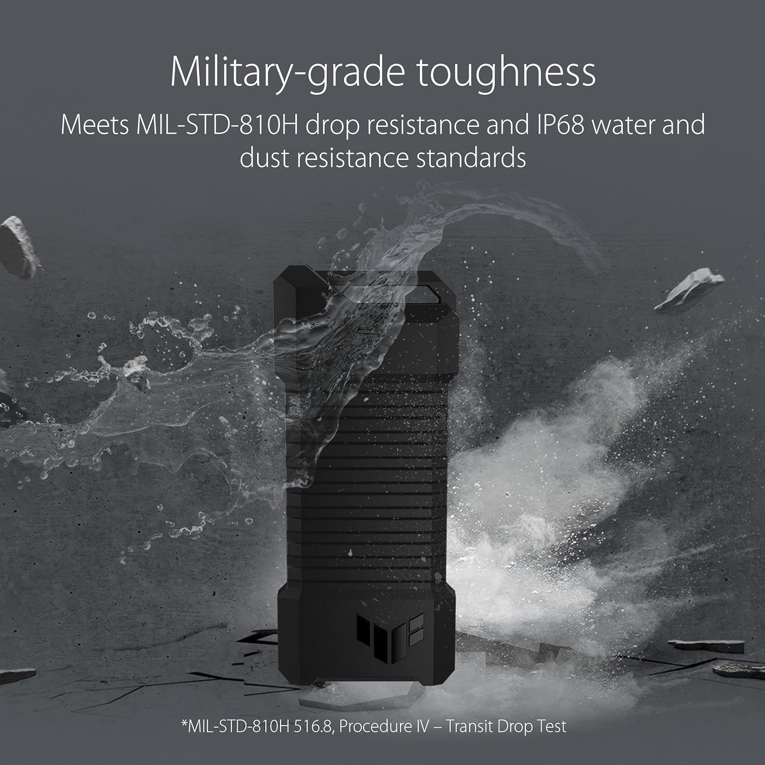 ASUS TUF Gaming A1 – Carcasa Externa M.2 NVMe SATA PCIe SSD – USB-C, M.2 Q-Latch para una fácil instalación, Resistencia a caídas, Resistencia al Agua y Polvo IP68, Soporte para PS5 y Xbox, Negro