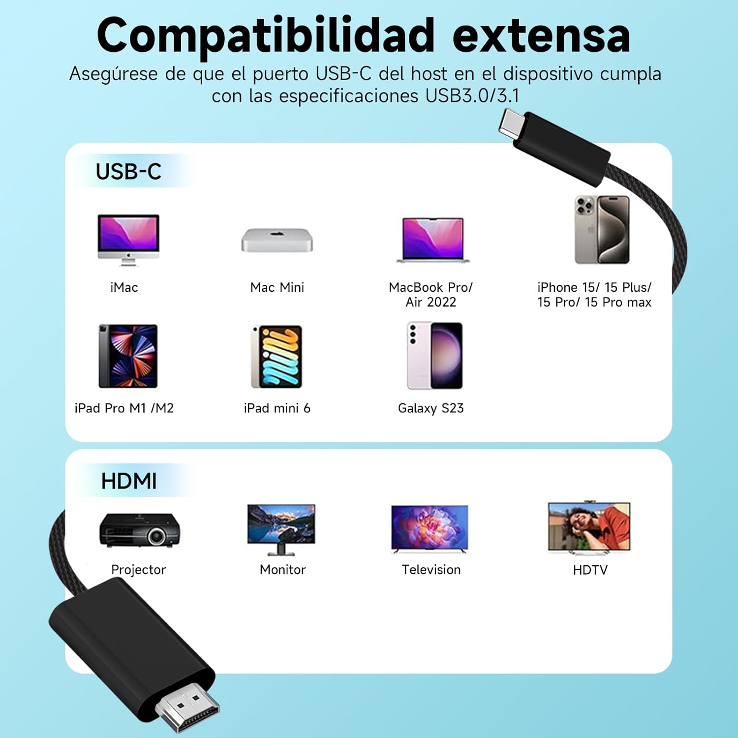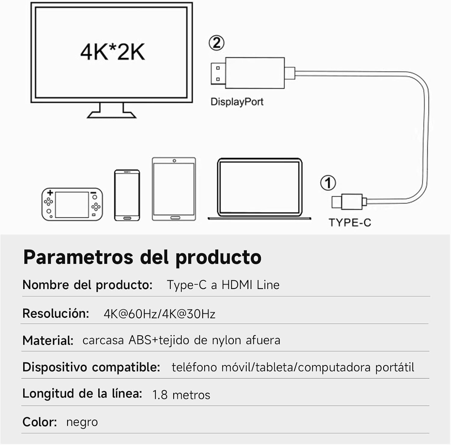 | Número de modelo del producto | Cable USB C 3.1 a HDMI |
