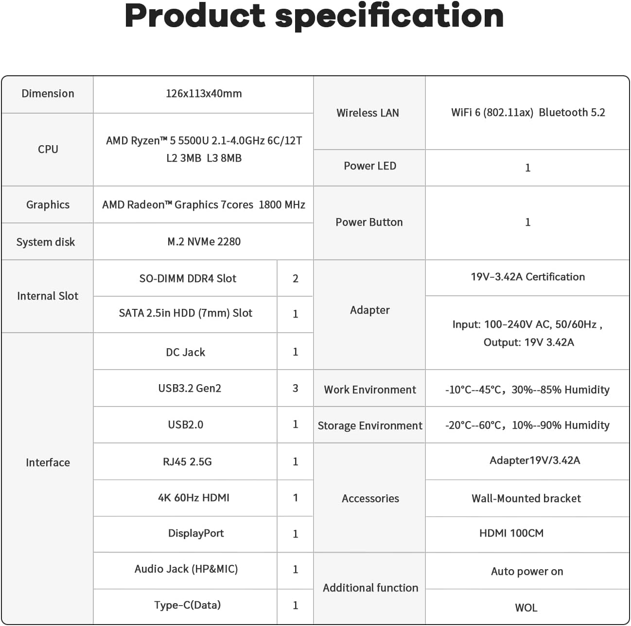 Beelink Mini PC, SER5 AMD Ryzen 5 5500U(7nm, 6C/12T) up to 4.0GHz, Mini Gaming Computer 16GB DDR4 RAM 500GB NVME SSD, Micro PC 4K@60Hz Dual Display, Mini Computer WiFi6/BT5.2/HTPC/W-11 Pro