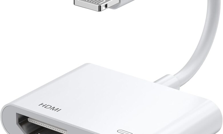 Belcompany [Certificado Apple MFi Adaptador AV Digital Lightning a HDMI, vídeo 1080P y sincronización de Audio Adaptador AV con Puerto de Carga para iPhone HDMI convertidor
