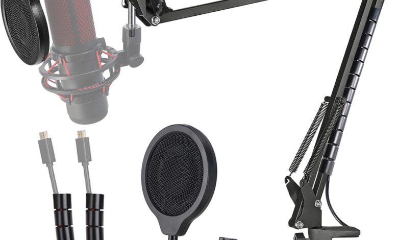 Brazo para Microfono HyperX QuadCast – Brazo de tijera para micrófono y 2 bridas para organizar cables compatibles con Hyperx Quadcast S para mejorar la calidad del sonido por YOUSHARES