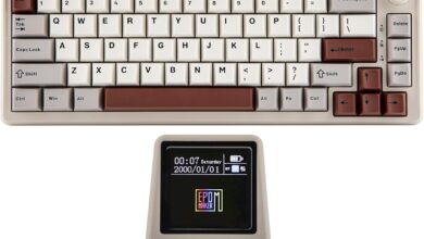 EPOMAKER RT65 Teclado Inalámbrico para Juegos, Teclado Mecánico Tri-Mode 65%, Crema Personalizada, con Mini Display y Joystick, Retroiluminación RGB, NKRO (Retro Grey, Wisteria Linear Switch)