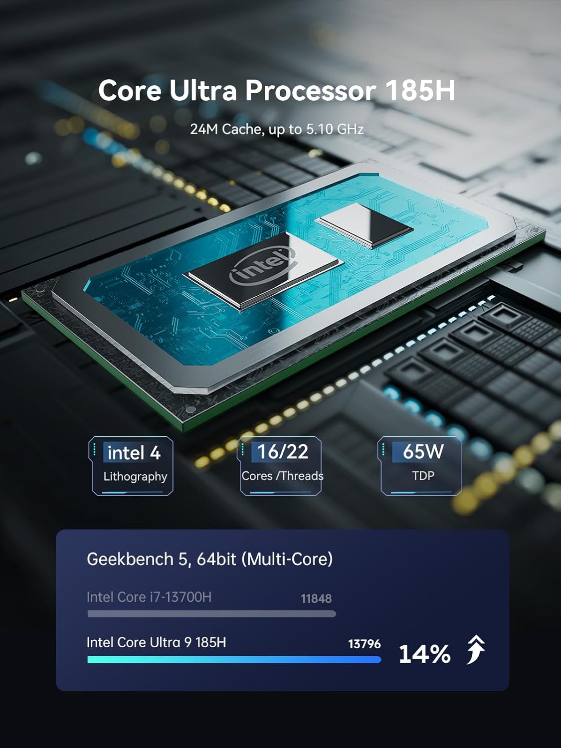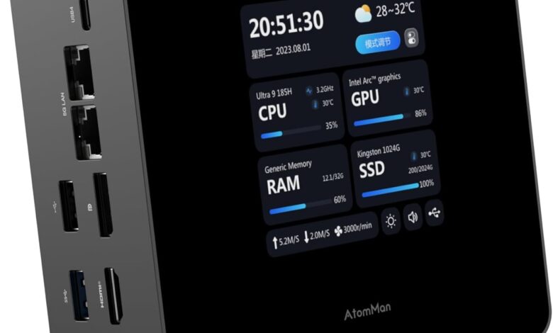 X7 Ti Mini PC Intel Core Ultra 9 Procesador 185H (16T/22C, hasta 5.1GHz) con cámara FHD 1080P, 32GB DDR5 + 1TB SSD, salida HDMI/DP/2x USB4, 2X 5G LAN, WiFi 7, 4 pulgadas Smart Screen Gaming PC