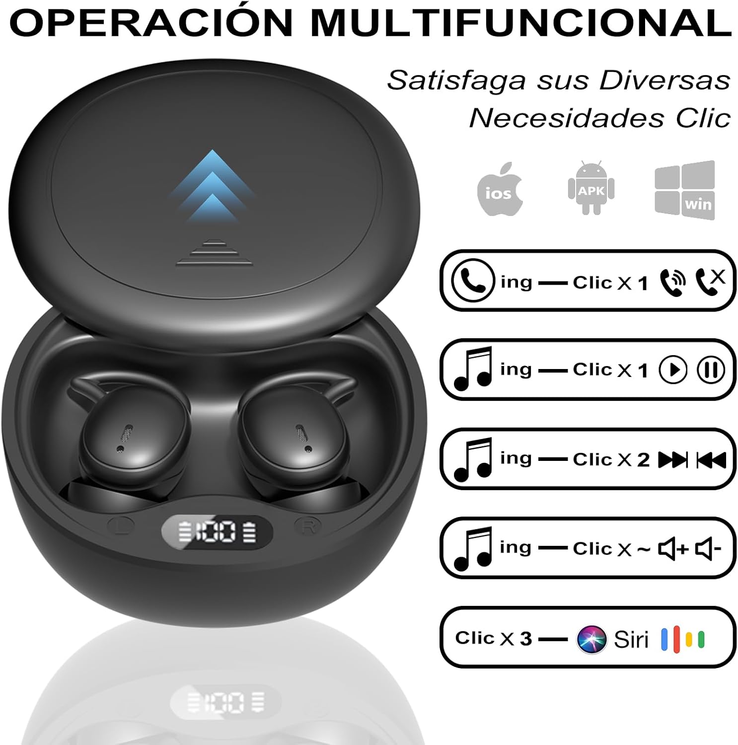 TRYXZSZ Audifonos para Dormir, Audífonos Inalámbricos con Cancelación de Ruido, Audífonos Bluetooth Semi-In-Ear, Calidad de Sonido Sin Pérdida, Cómodo Usar, Bluetooth 5.46 (Negro) (Negro)