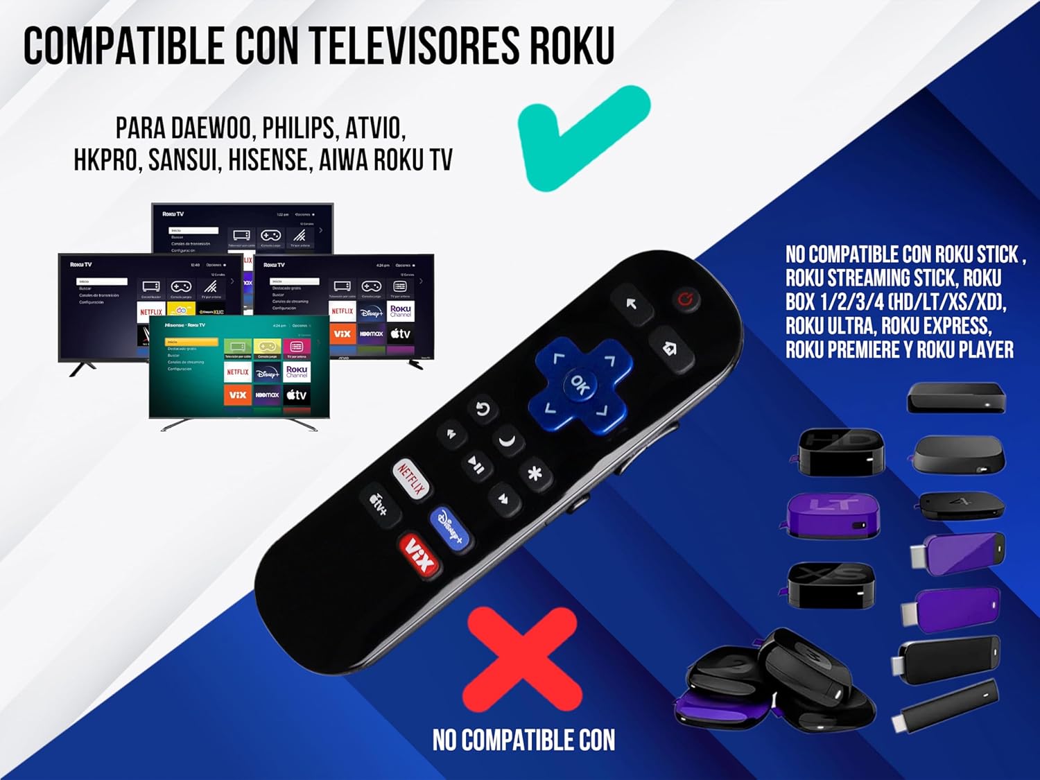 CONTROL EXPERT Control Remoto Compatible con Roku Philips Smart TV 3226000868 32pfl4765/f8 Hisense 50r6000gm 55r6000gm Netflix HBO Go Spotify JVC, Sharp, ATVIO