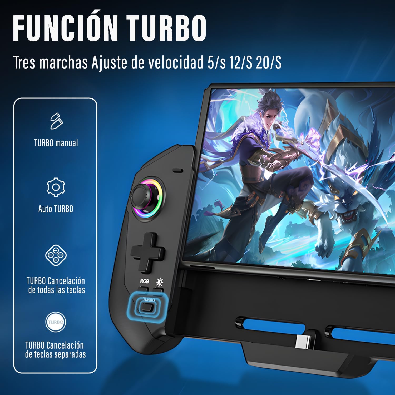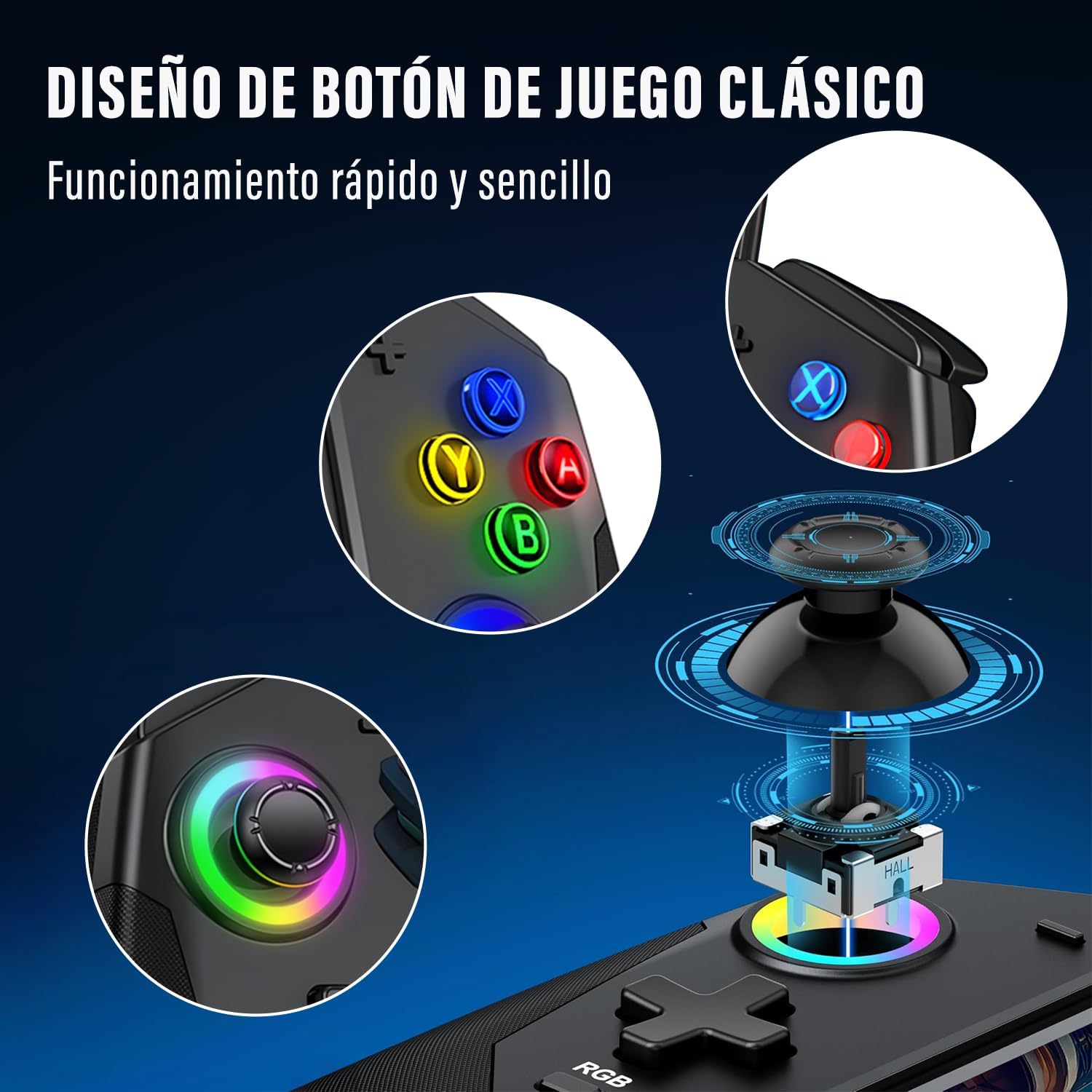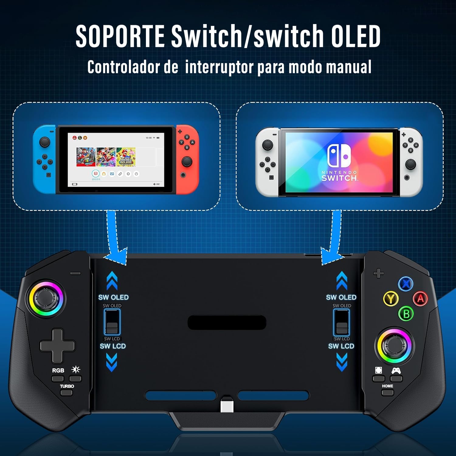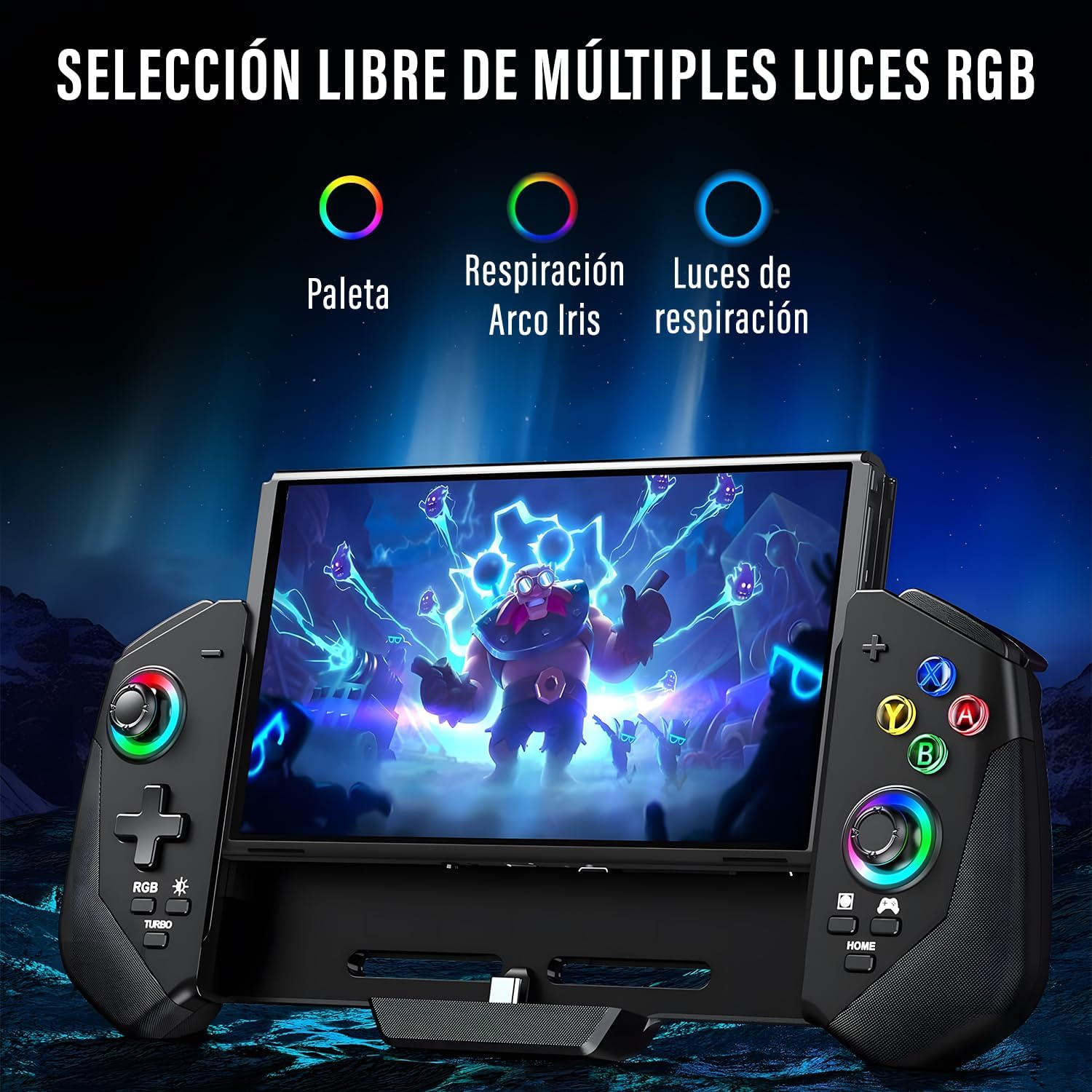Control para Nintendo Switch/Oled, Controlador de Transparente RGB con Turbo, Eje de Giroscopio y Gamepad de Doble Vibración, para Nintendo Switch/Nintendo OLED