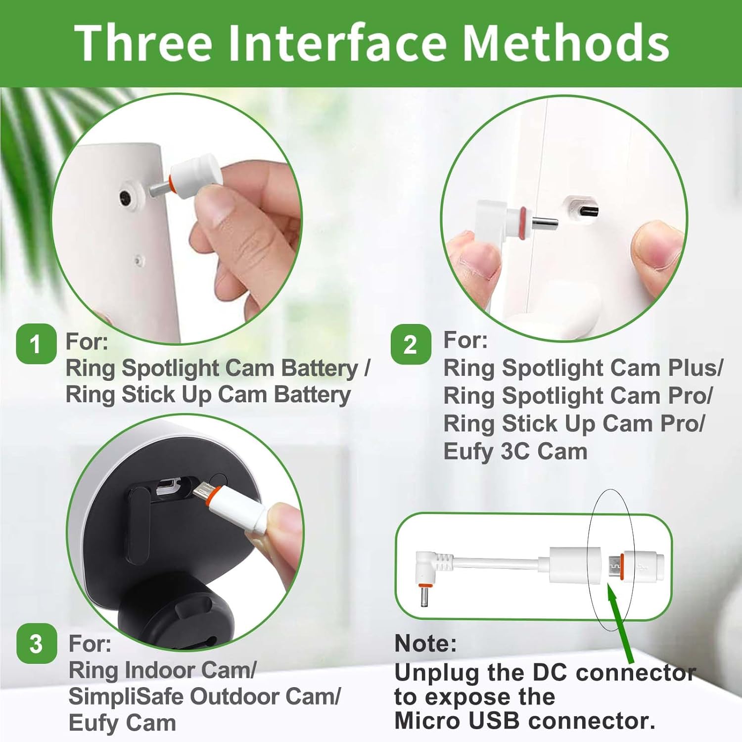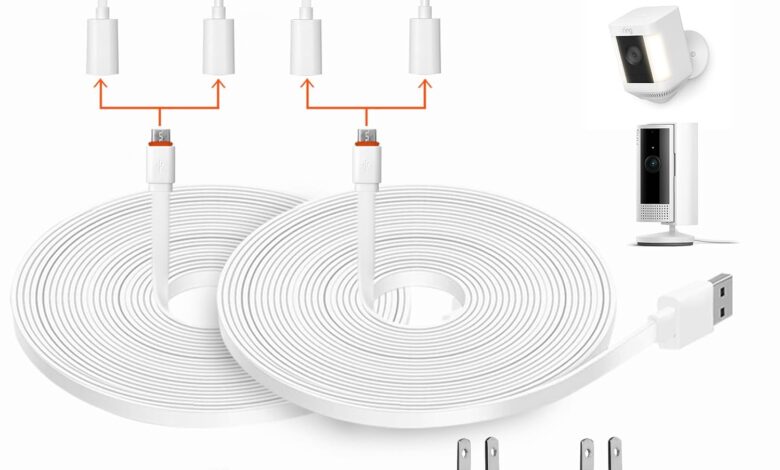 DIANMU Cable de alimentación de 26 pies con adaptador para Ring Spotlight Cam Plus/Pro/Batería, Ring Stick Up Cam/Pro (batería), EufyCam 3C, cable de carga resistente a la intemperie y cargador