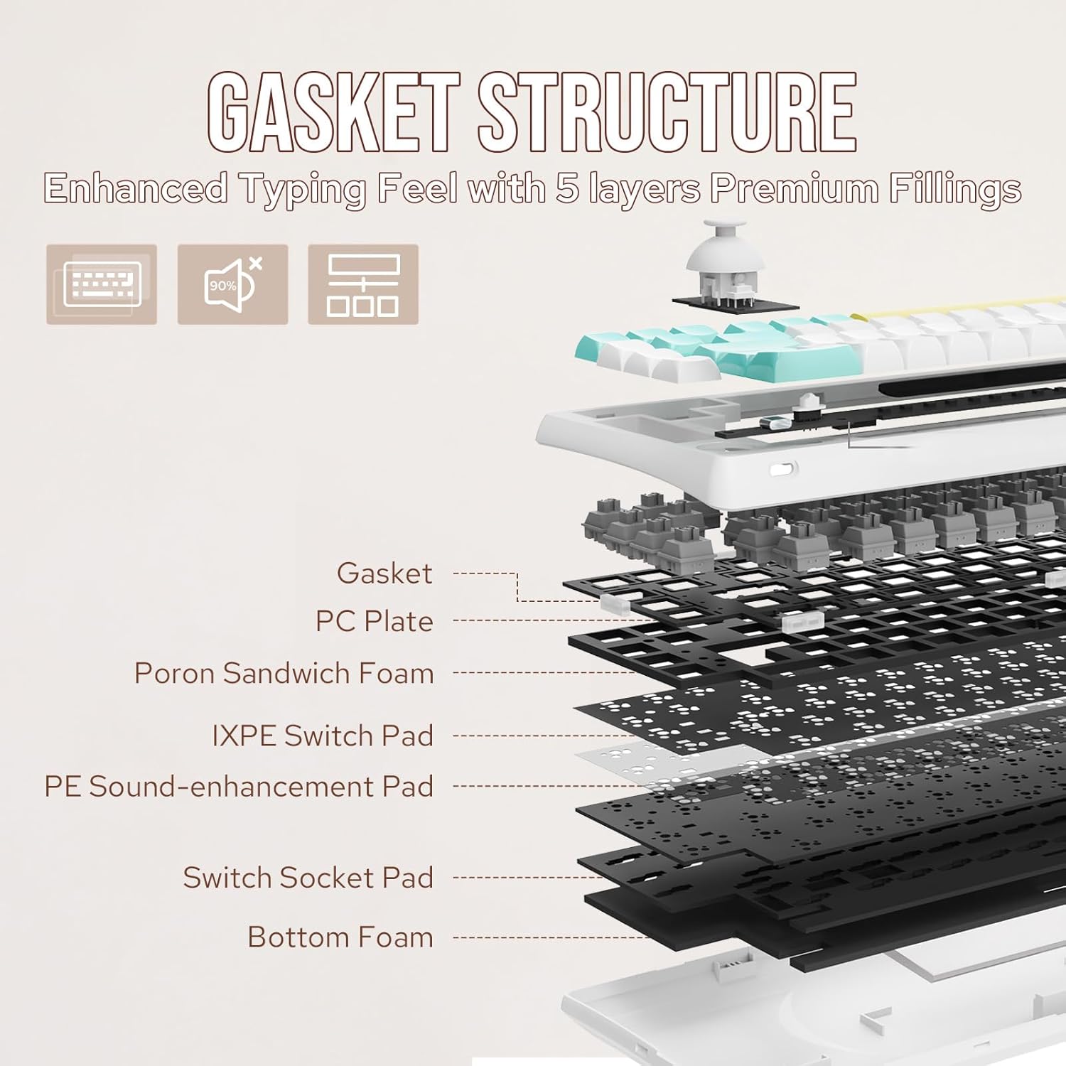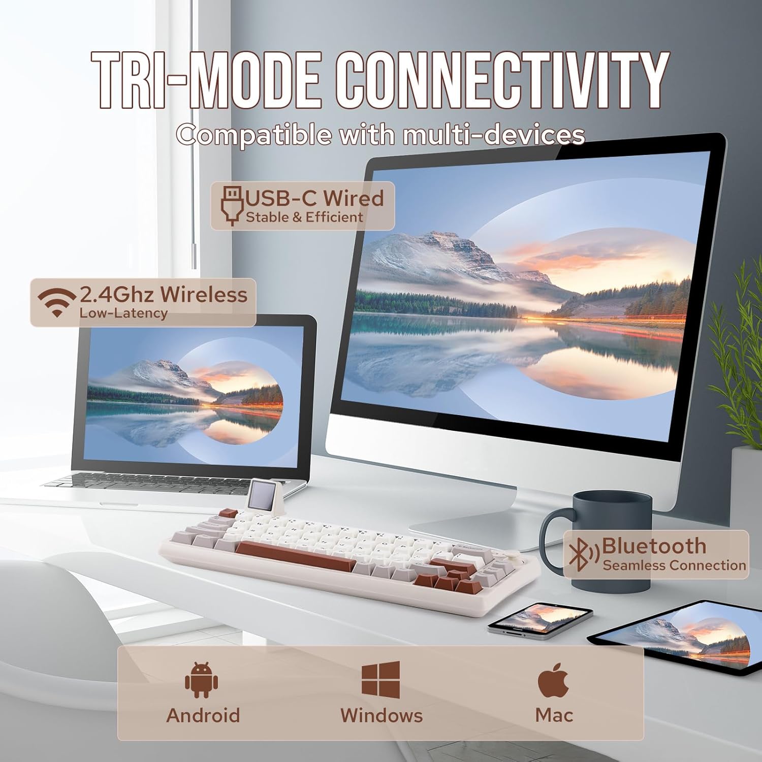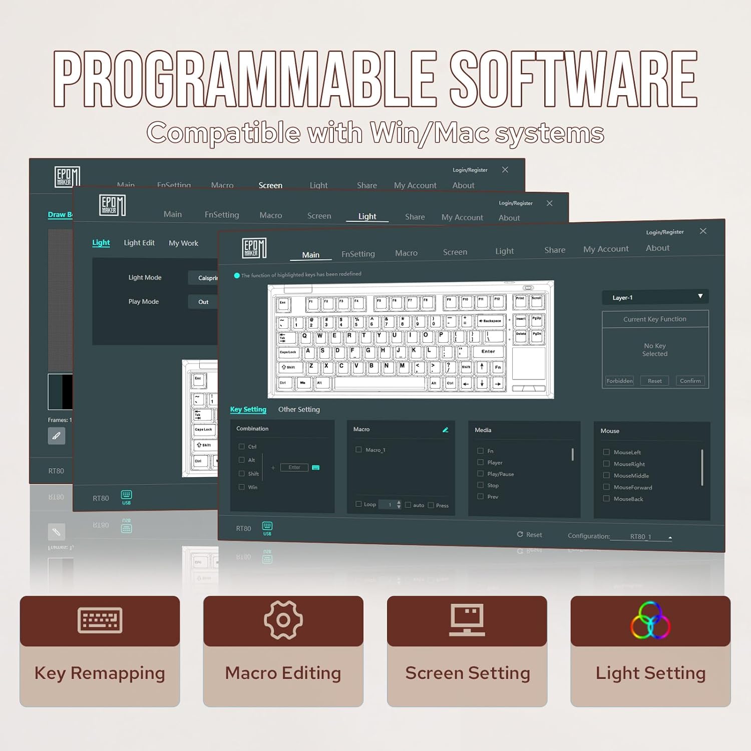 EPOMAKER RT65 Teclado Inalámbrico para Juegos, Teclado Mecánico Tri-Mode 65%, Crema Personalizada, con Mini Display y Joystick, Retroiluminación RGB, NKRO (Retro Grey, Wisteria Linear Switch)