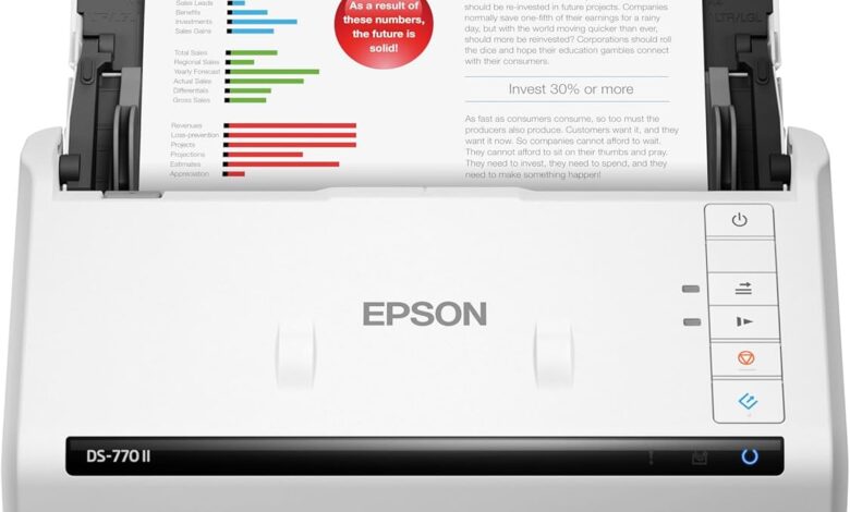 Epson DS-770 II Escáner de Documentos dúplex a Color para PC y Mac, con alimentador automático de Documentos (ADF), Controladores Twain e ISIS de 100 páginas