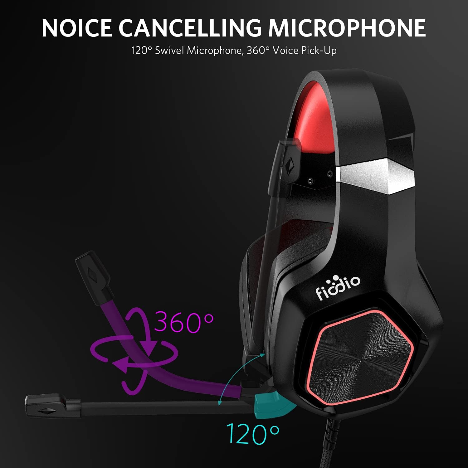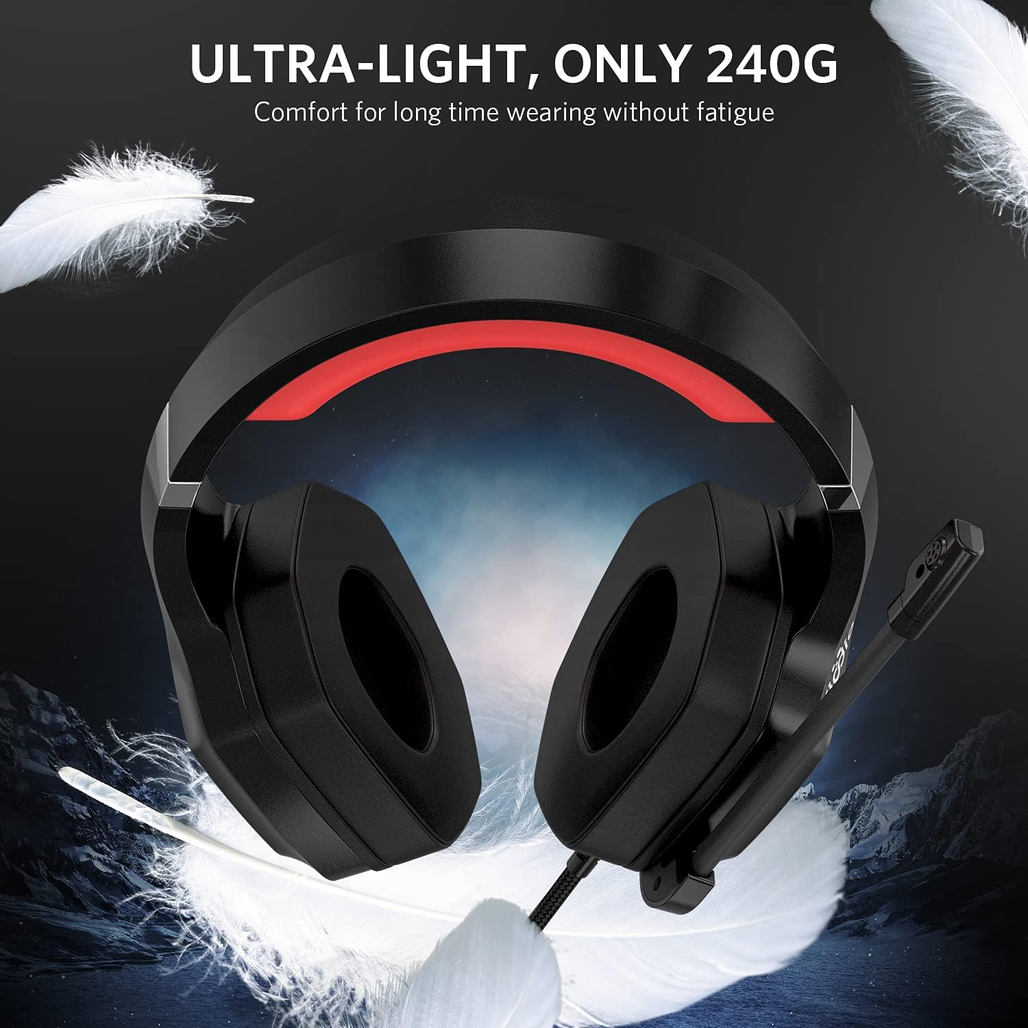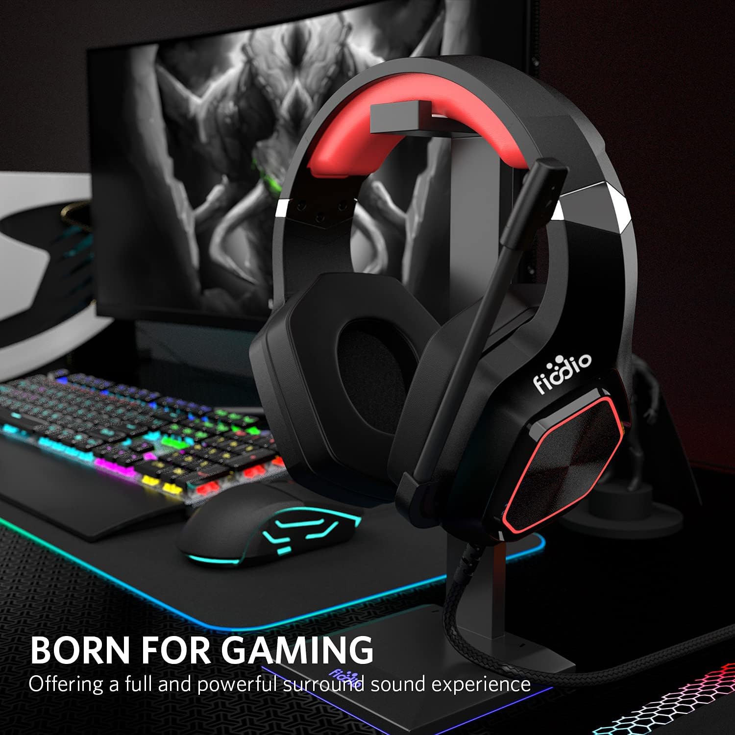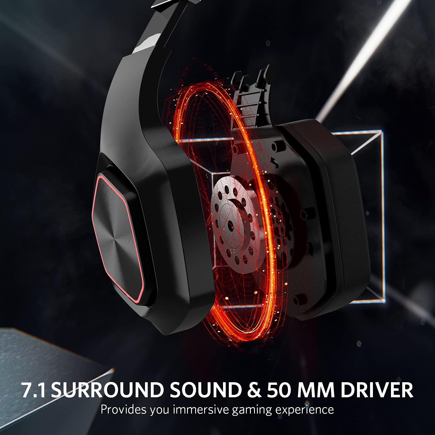 FIODIO 7.1 – Auriculares para Juegos de Sonido Envolvente con Efecto LED, Auriculares estéreo con cómoda orejera ergonómica y micrófono