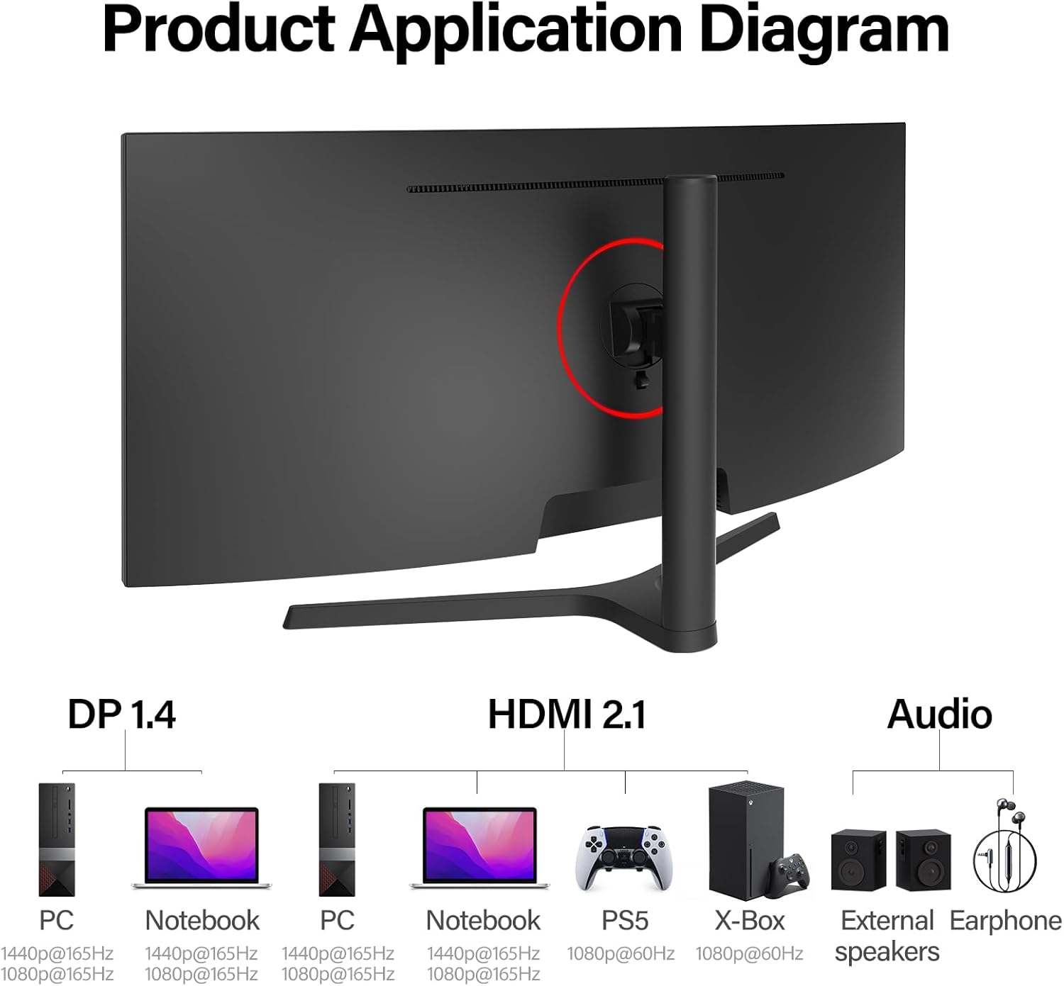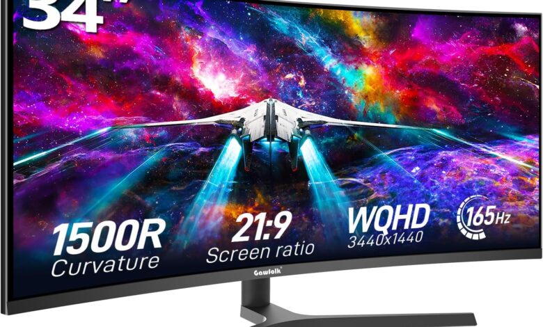 Gawfolk 34 Inch Ultrawide Curved Gaming Monitor, 1500R PC Screen 165hz UWQHD 3440×1440, Curved Computer Screen with FreeSync,Multi-Directional Adjustable Base