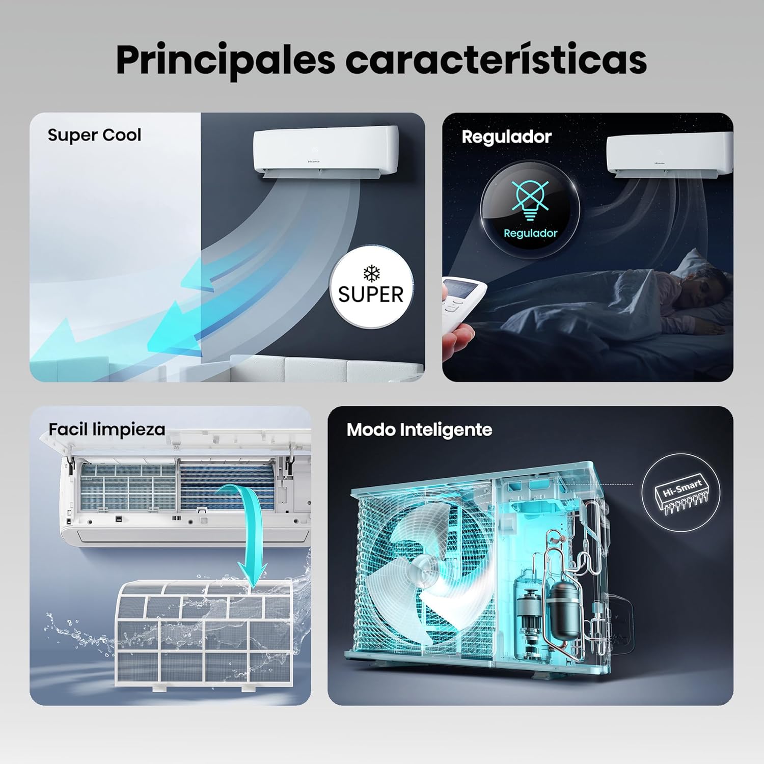 Hisense Aire Acondicionado Minisplit Inverter AT121CK, 12000BTU/h, 115V, Blanco