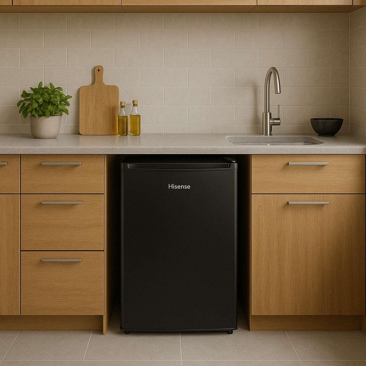 Hisense RR43D6ABX1- Frigobar,4.4 pies cúbicos,Congelador independiente,Termostato ajustable,Estantes para botellas de 2 litros,48x56x84cm(AnchoxLargoxAlto),Gris