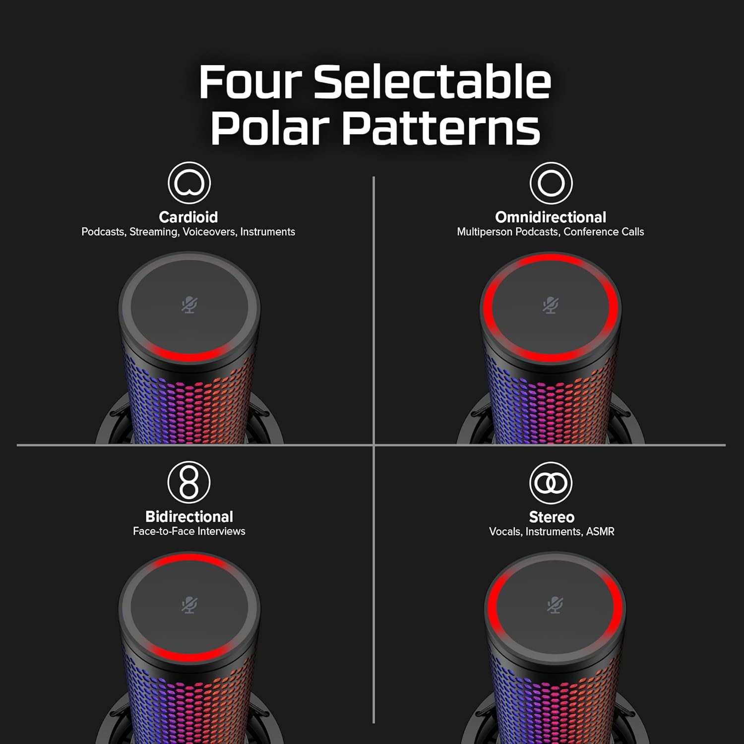 HyperX QuadCast 2 S – Micrófono USB, con iluminación RGB, transmisión y podcasting, con Controles Integrados, iluminación LED, Montaje de Choque extraíble, PC, Mac, USB-C – Negro