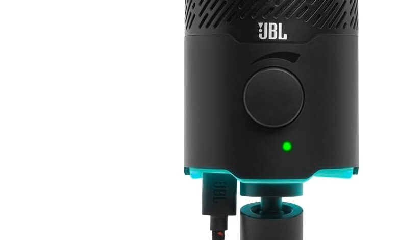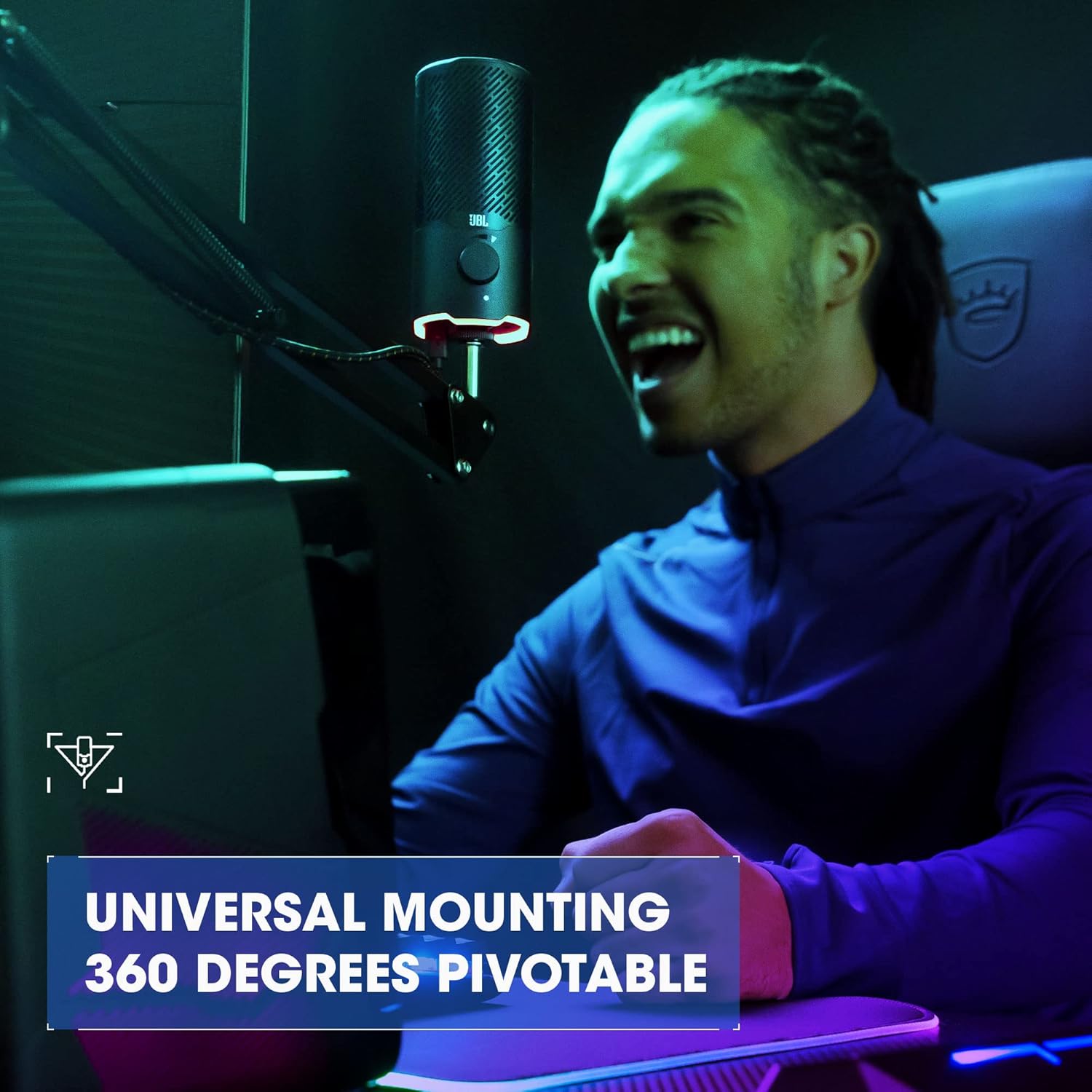 JBL Quantum Stream Micrófono USB-A, Condensador Doble de 14mm, Cardioide y Omnidireccional, Luz Indicadora RGB – Negro