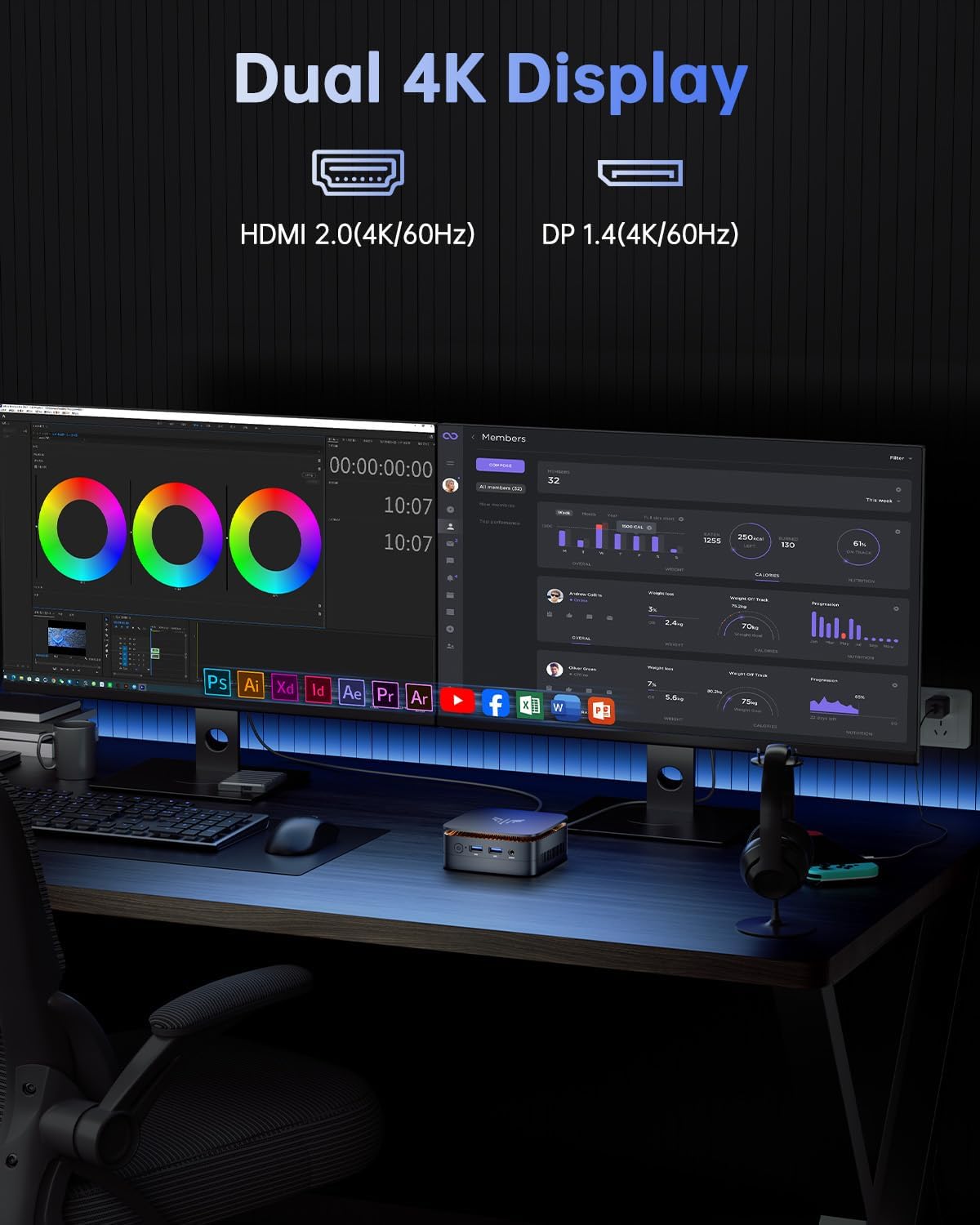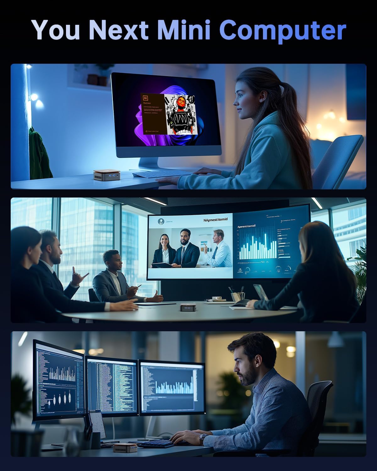 KAMRUI Essenx E1 Mini PC, 16GB DDR4 RAM 256GB M.2 SSD, Mini Computer Intel Twin Lake N150 (up to 3.6GHz), Desktop Computer Dual 4K, Ethernet, WiFi, Bluetooth for Business, Office, Home