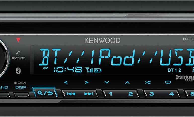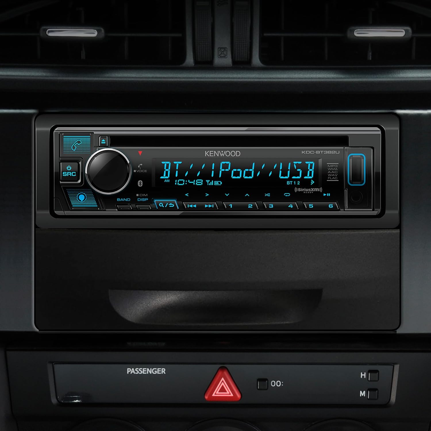KENWOOD KDC-BT382U Receptor estéreo de coche con Bluetooth, radio AM/FM, visualización a color variable, USB frontal de alta potencia, Alexa incorporado y listo para SiriusXM
