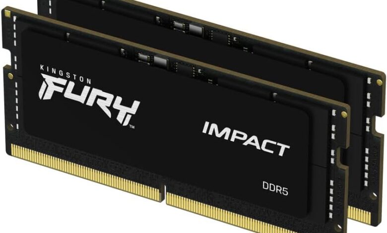 Kingston Fury Impact DDR5, Memoria Gamer para Laptop, Capacidad: 32GB Kit (2x16GB), Frecuencia: 6000MT/s, Latencia: CL38, Factor de Forma: SODIMM 262-Pin, Color: Negro, SKU: KF560S38IBK2-32
