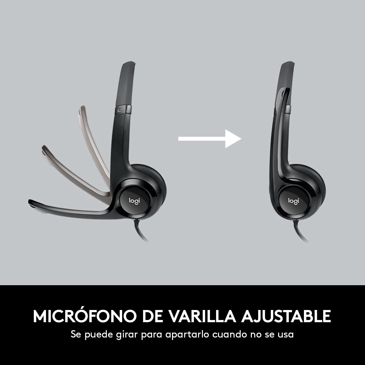 Logitech H390 Diadema con Cable, Sonido Estéreo y Micrófono USB con Supresión de Ruido, Controles Integrados en el Cable, PC/Mac/Laptop/Chromebook – Negro