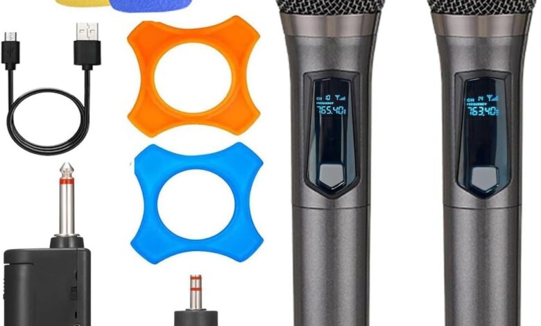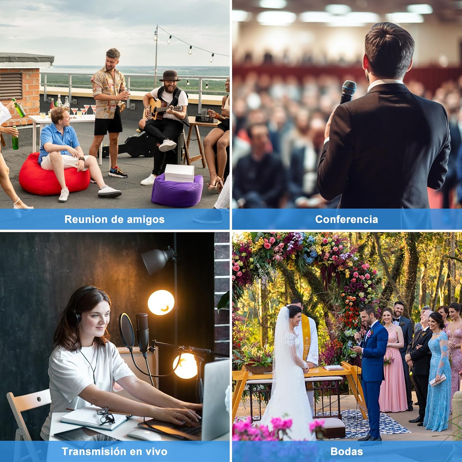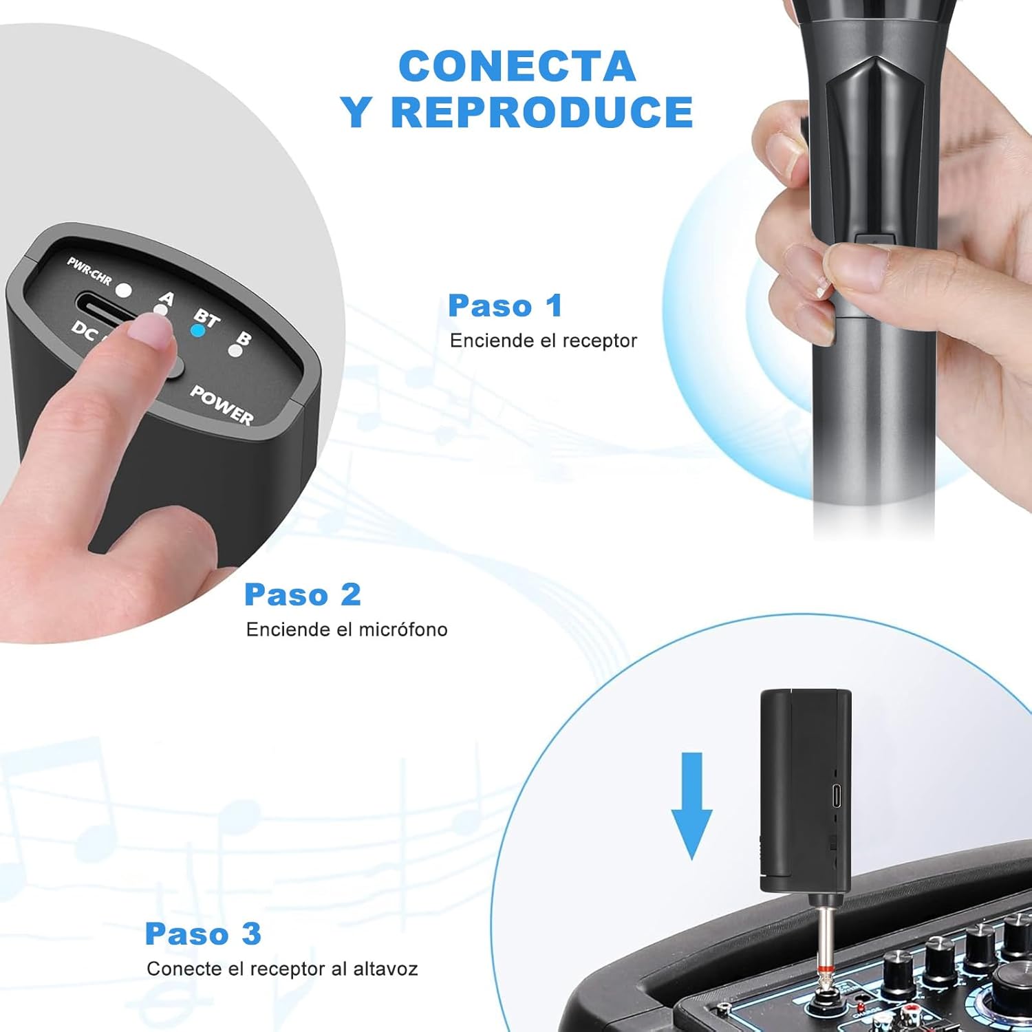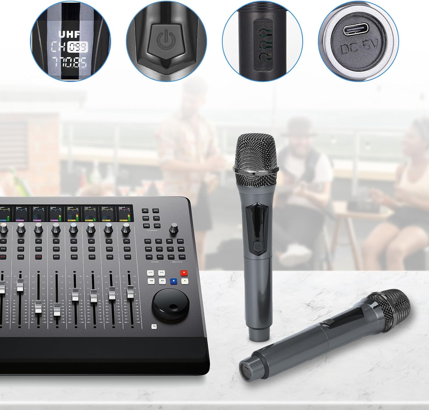 Micrófono Karaoke Paquete, Micrófono Inalámbrico Micrófono de Mano con Receptor Recargable y de Alta Frecuencia 100HZ-20KHZ para El Hogar Ktv Boda DJ Fiesta Iglesia (Negro)