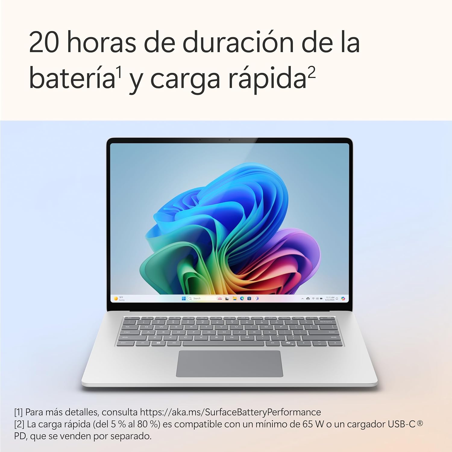 Microsoft Surface Laptop Copilot+ PC Snapdragon X Plus 16GB RAM 256GB SSD Pantalla tactil 13.8i Color Platino