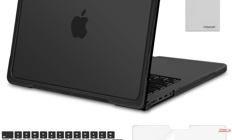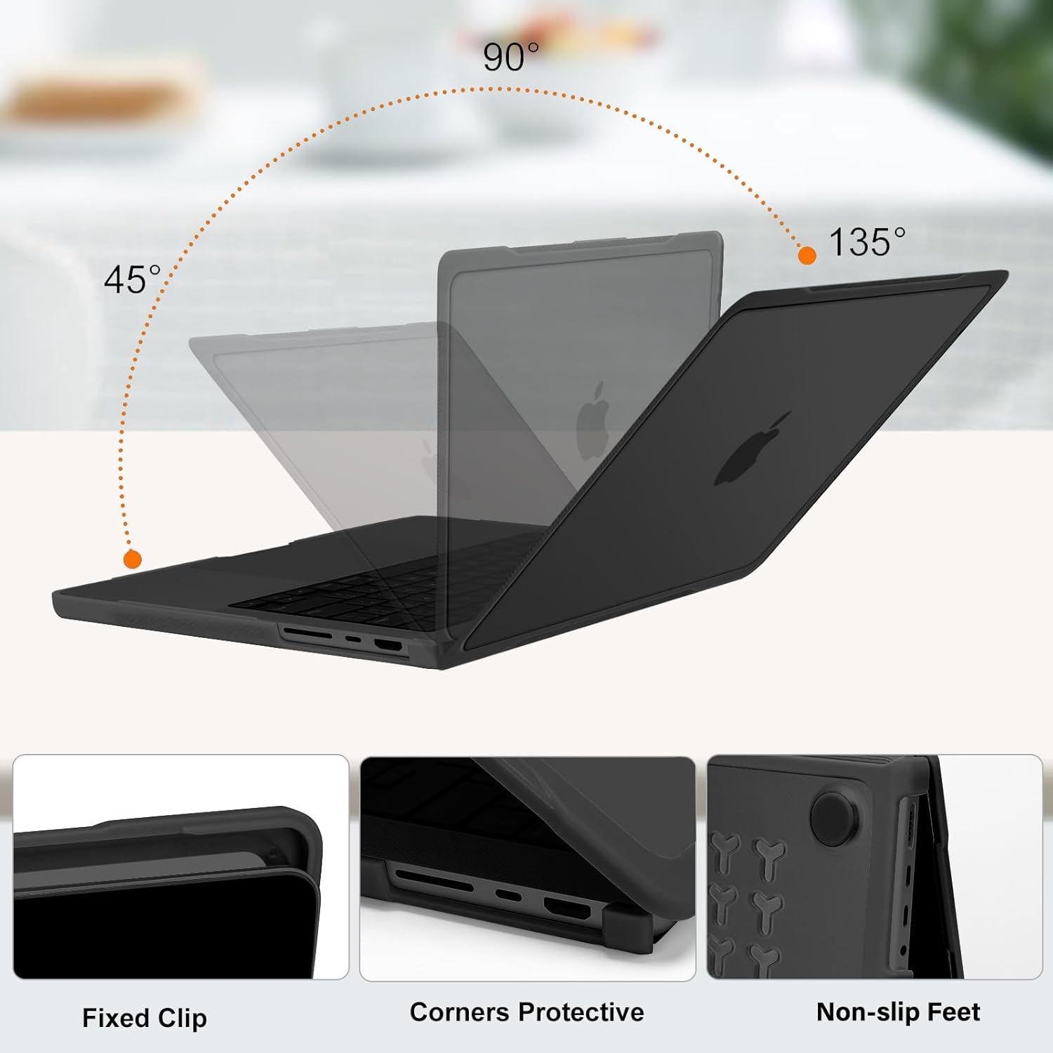 MOSISO Funda Compatible con MacBook Pro 14 Pulgadas M5 A3434 M4 A3112 M3 A2992 M2 A2779 M1 A2442,TPU Suave Parachoques Carcasa&Cubierta de Teclado&Protector de Pantalla&Bolsa,Negro