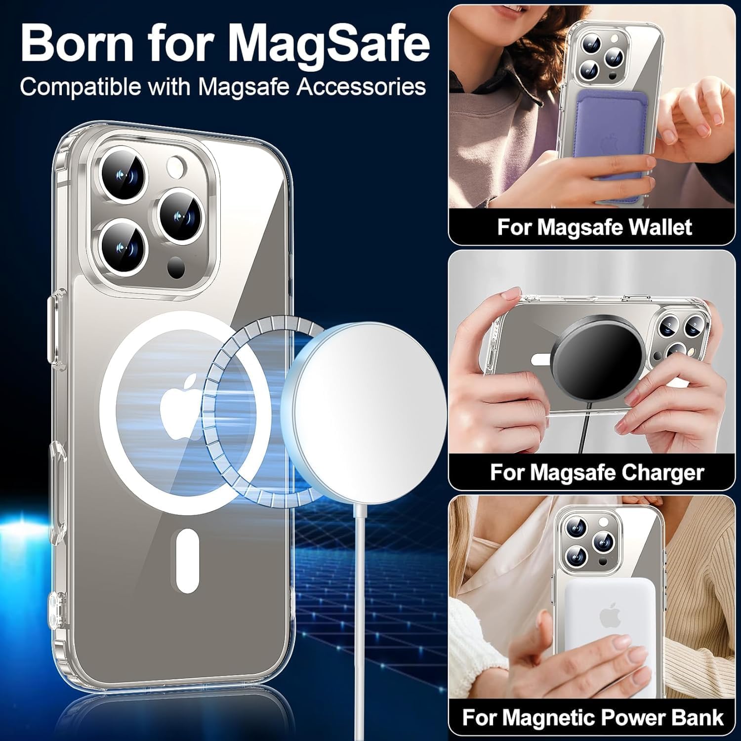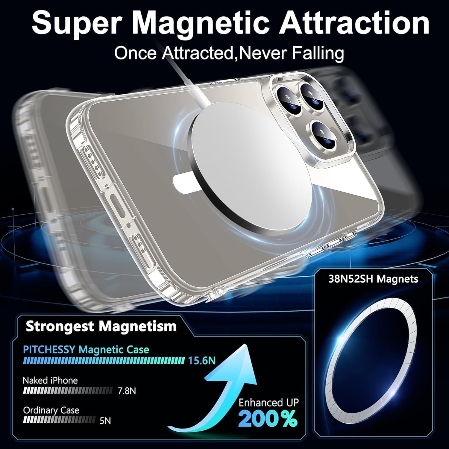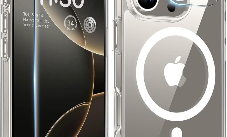 NDOOL Funda Magnética para iPhone 16 Pro Case, 3 en 1 Cristal Templado Protector de Pantalla y Carcasa con Protector del Camara, Resiste Amarillamiento, Anti-Choque y Anti-Arañazos