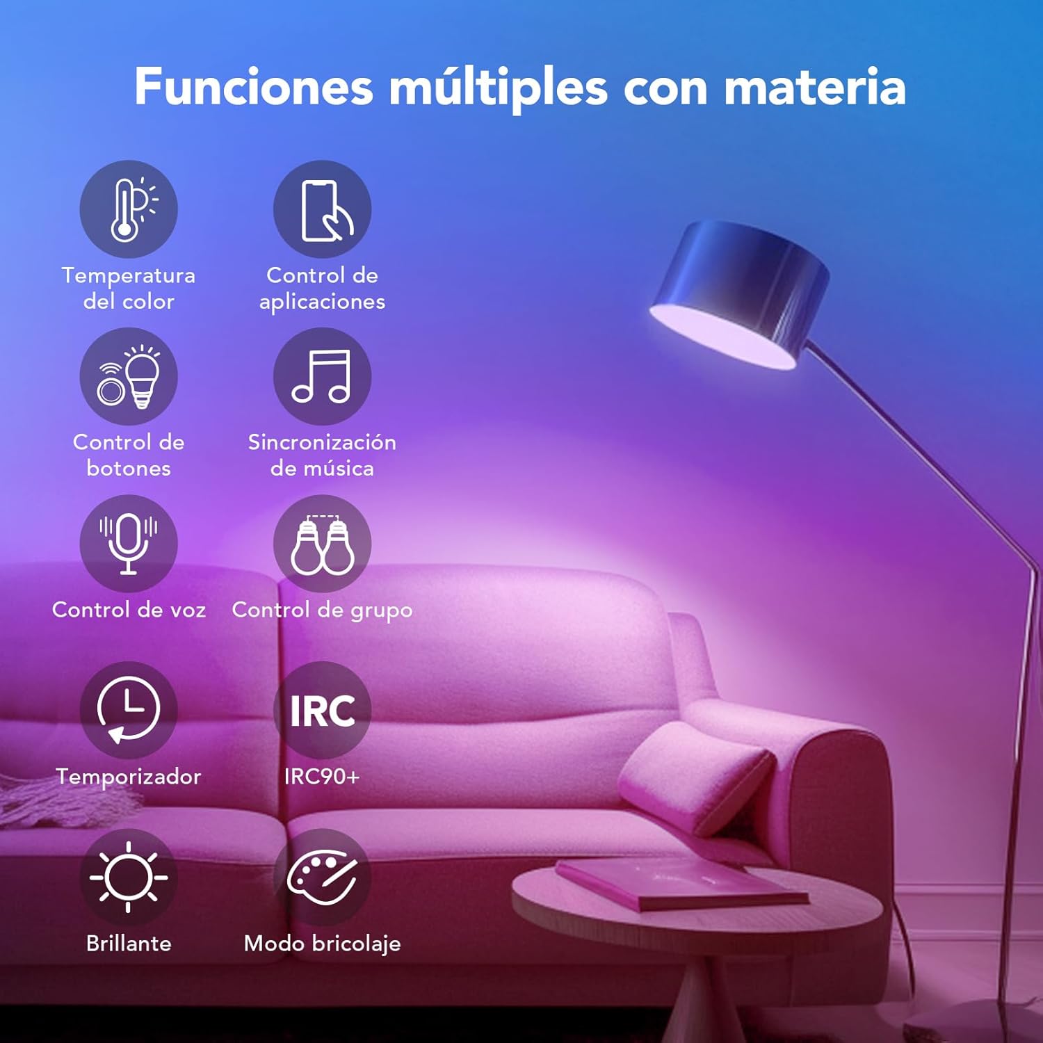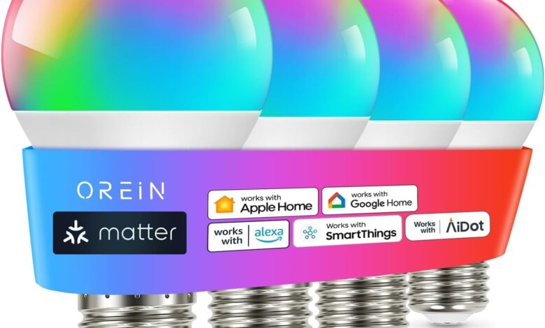 OREiN Matter Focos Inteligentes Compatible con Alexa, Apple Home, Google Home, SmartThings, Focos Inteligentes Multicolor A19 E26, Bombillas Inteligentes 60W Equi 800 LM CRI90 4 Unidades