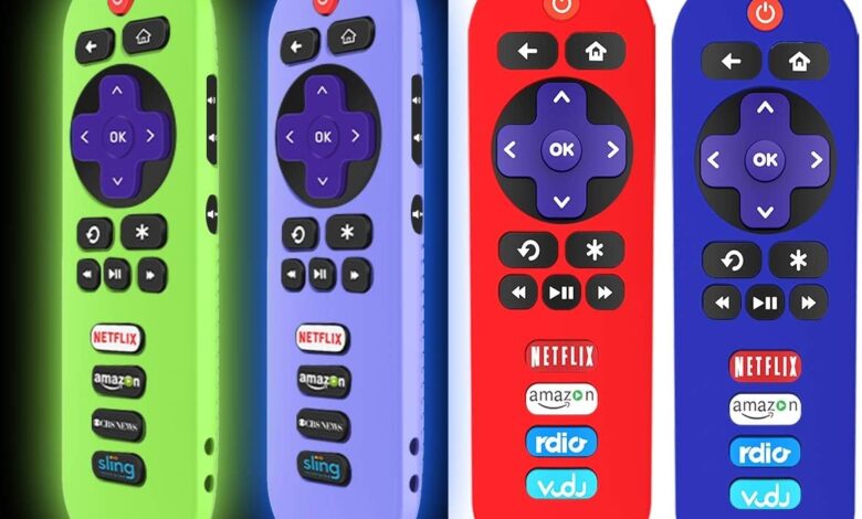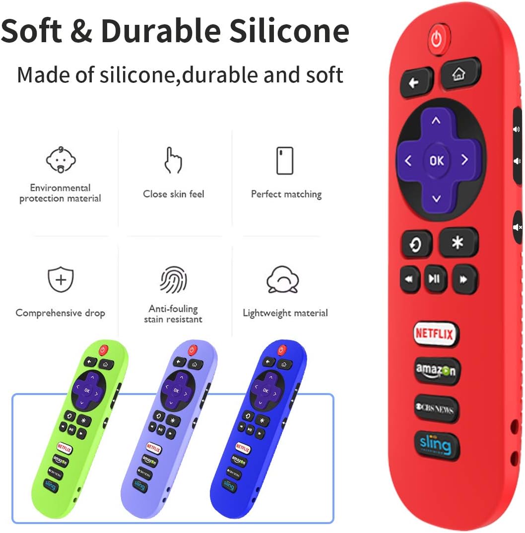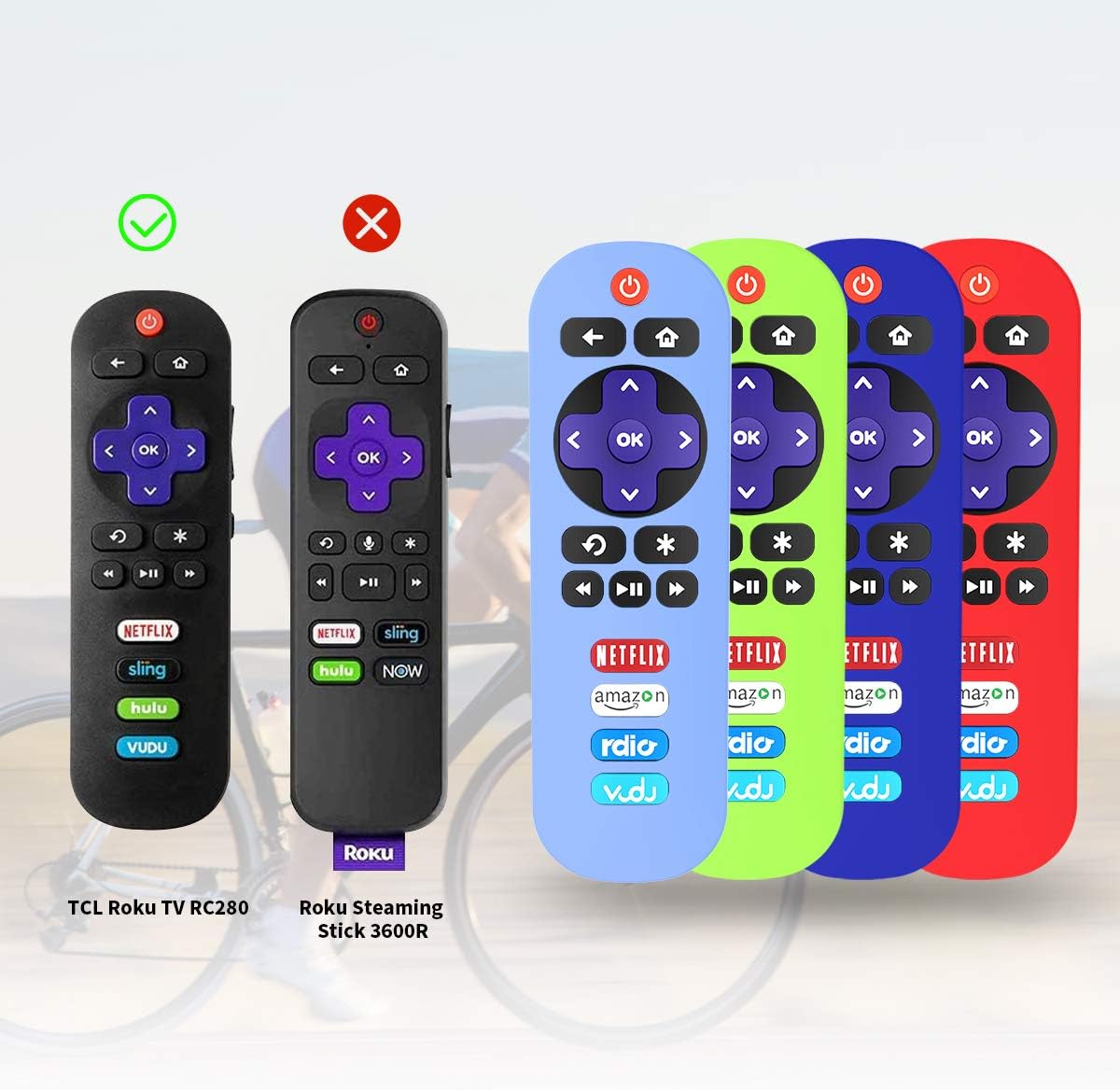 Paquete de 4 fundas de silicona para TCL Roku TV RC280 mando a distancia, protección universal de repuesto ligera/a prueba de golpes, TCL Roku TV con cordón (azul brillante, verde brillante, rojo y