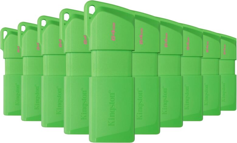 PSA COMPUTO Y PAPELERIA Kit 10 Memoria Kingston 64GB USB 3.2 Gen 1 EXODIA Color Verde (Neon) KC-U2L64-7LG Diseño de capuchón móvil para Proteger el Conector USB