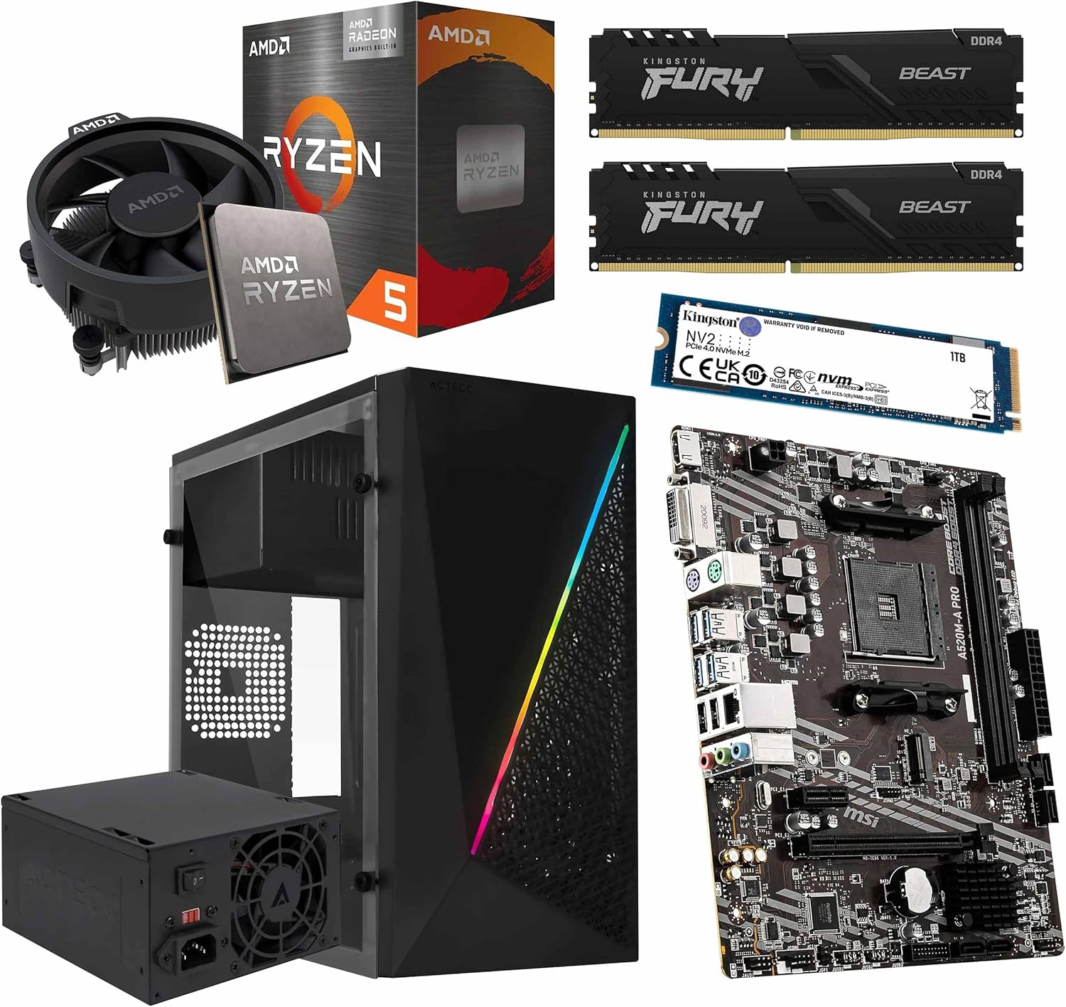 PSA COMPUTO Y PAPELERIA PC Gamer DE ESCRITOTIO PROCESADOR RYZEN 5 5600G, 32GB RAM 3200MHZ (2X16) SSD 1TB M.2 GABINETE con Cristal Transparente Combo con Kit DE Teclado Incluido.