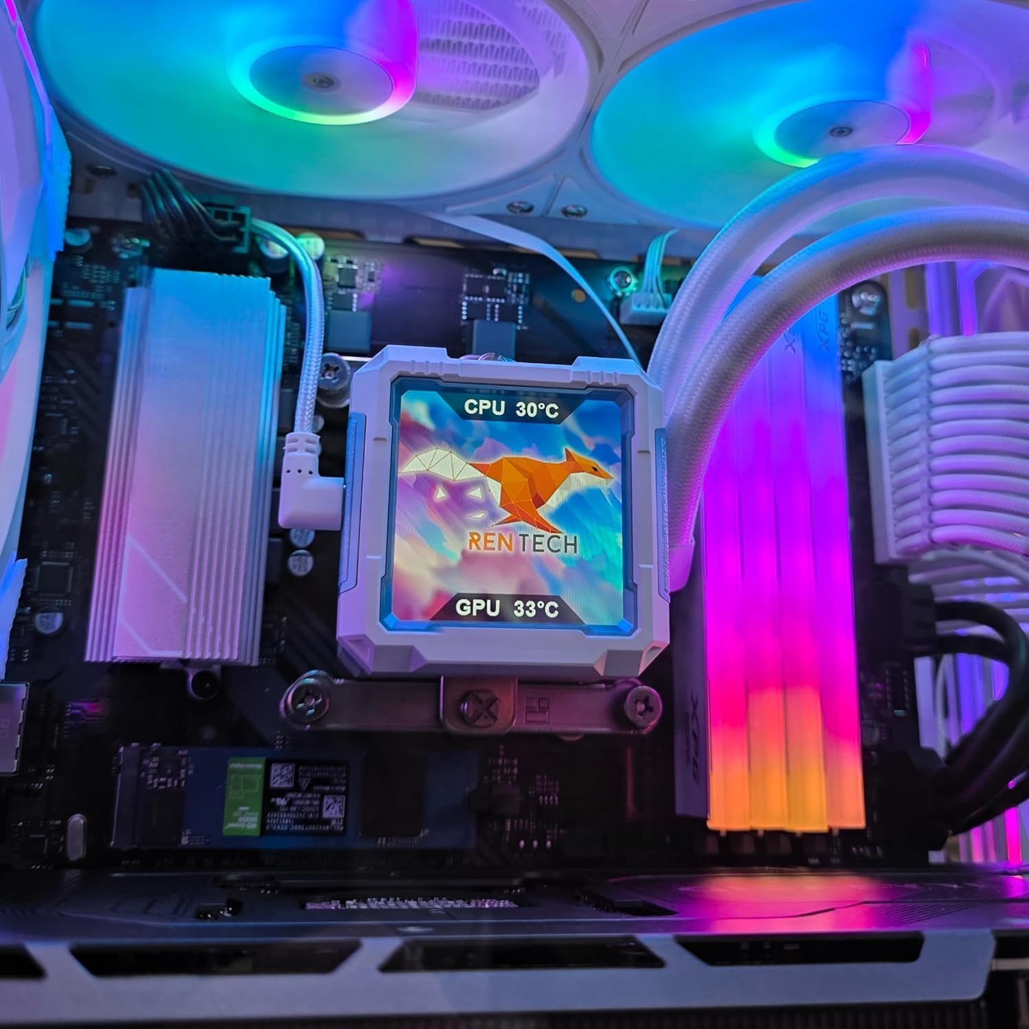 Ren-Tech Pc Gamer RTX 5060 Ti 8 GB Blanca Ryzen 7 5700 Enfriamiento Líquido 64gb RAM 1 TB NVME SSD