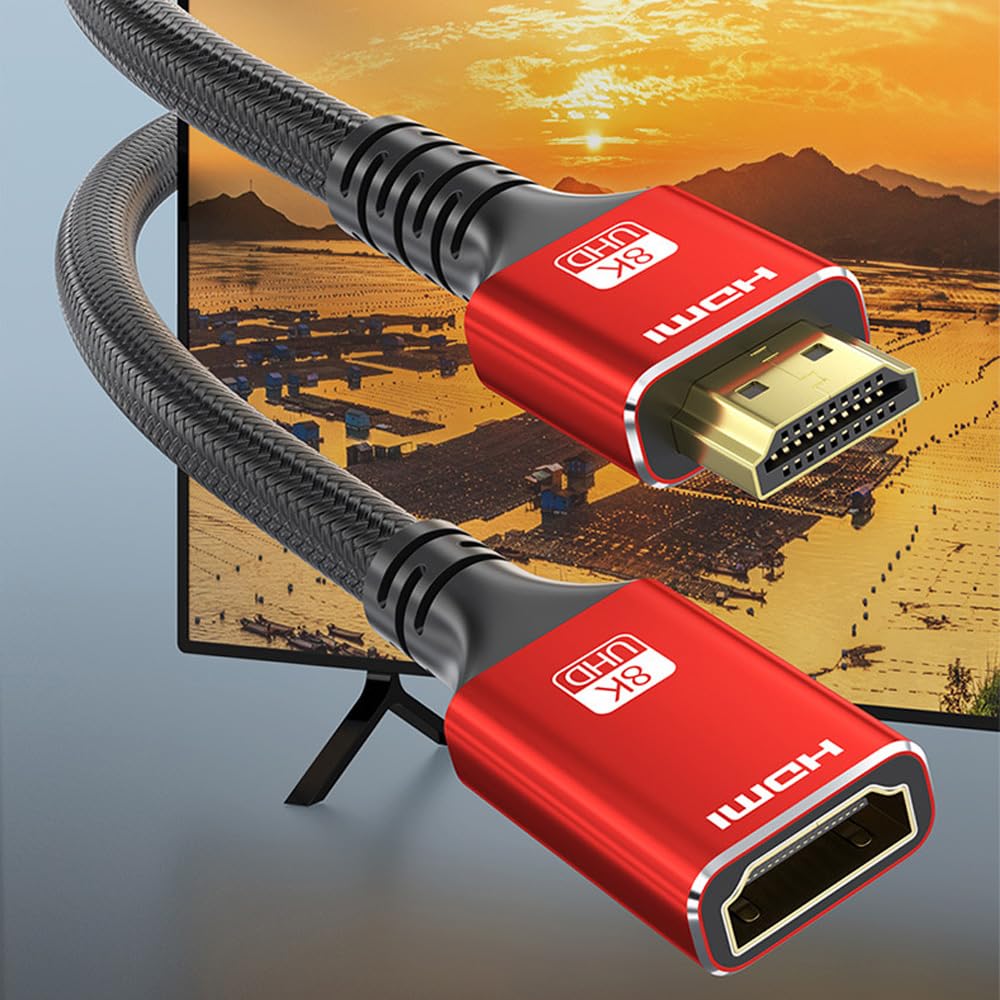 RIIPOO – Cable de extensión HDMI de 6.6 pies, 8 K a 60 Hz, 4 K a 240 Hz, 48 Gbps, HDMI 2.1 macho a hembra, ideal para cine en casa, juegos y pantallas de alta resolución