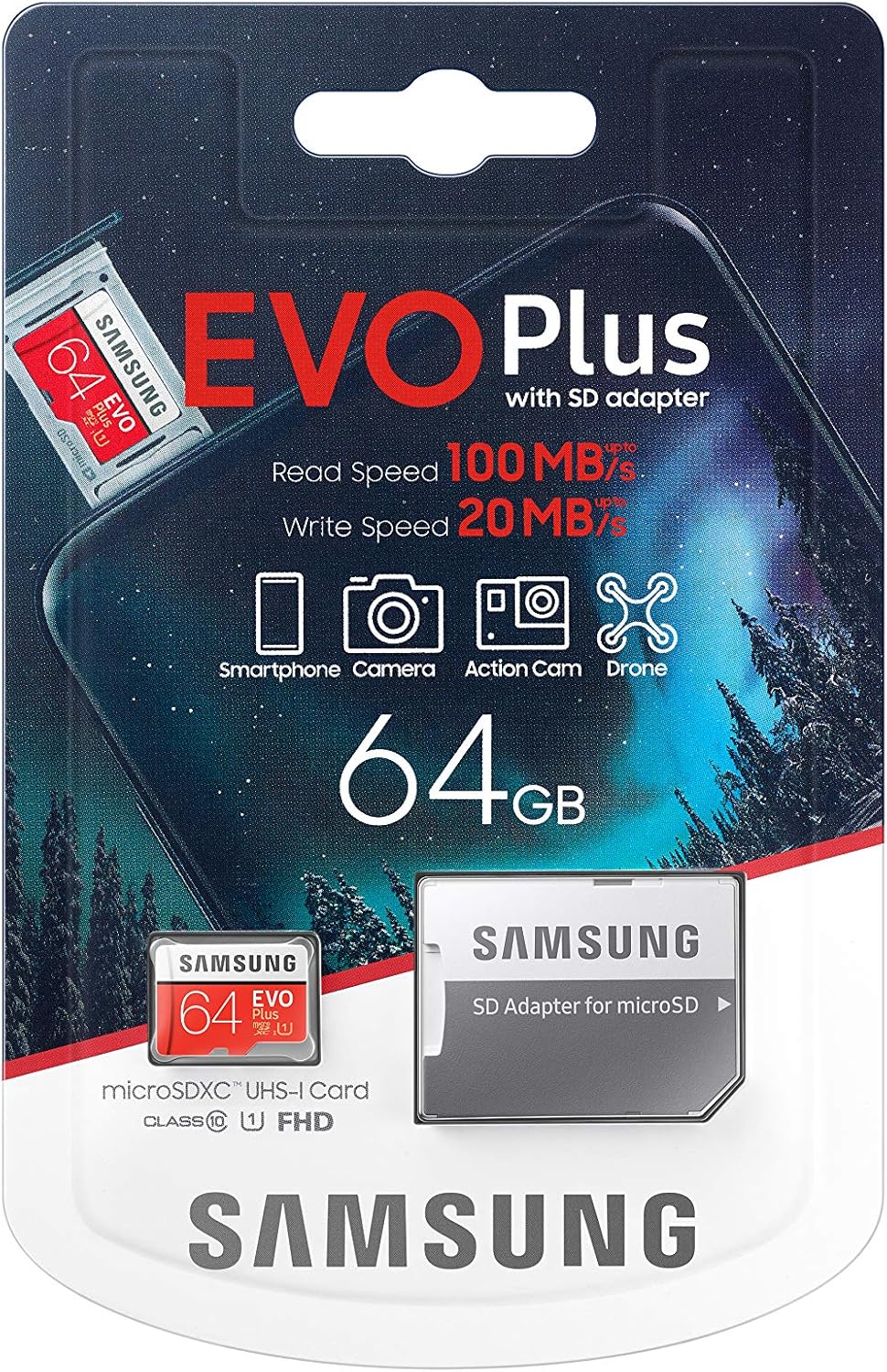 Samsung EVO Plus 64GB microSDXC UHS-I U3 100MB/s Full HD y 4K UHD Tarjeta de memoria con adaptador (MB-MC64HA)