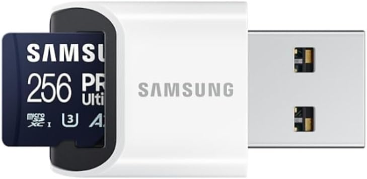Samsung Pro Ultimate – Tarjeta microSD + Lector de Tarjetas USB, 256 GB, para Smartphones, Drones y cámaras de acción, UHS-I U3, 200 MB/s de Lectura, 130 MB/s de Escritura, MB-MY256SB/WW