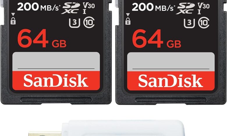 SanDisk – Tarjeta de memoria SDXC SD Extreme Pro de 64 GB (dos unidades), funciona con Nikon D3500, D7500, D5600, cámara DSLR digital 4K V30 U3 (SDSDXXU-064G-GN4IN) Plus (1) lector de múltiples