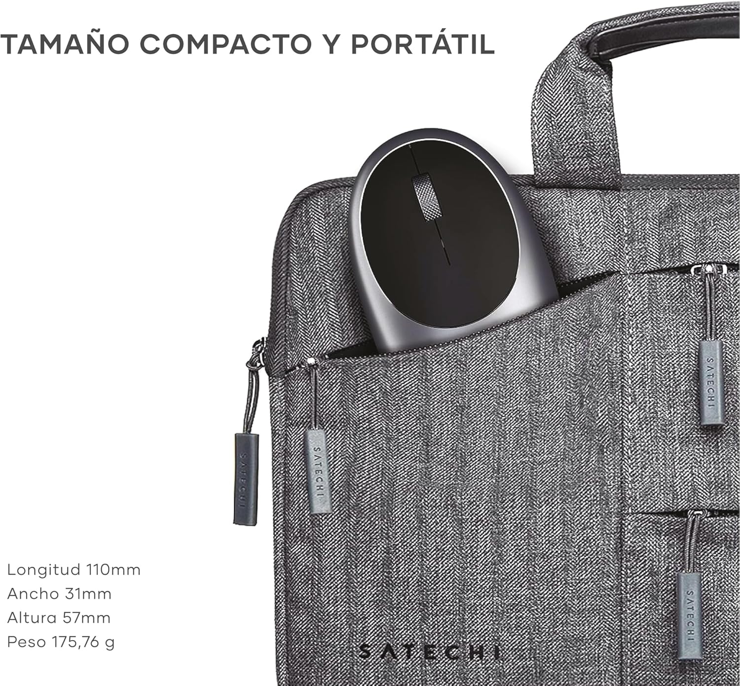 SATECHI Ratón inalámbrico Bluetooth M1, Recargable por USB-C, Compacto y portátil, para MacBook Air/Pro M5/M4, iPad Air/Pro M5/M4/M3, iPad Mini, Mac Mini, iMac y Windows – Gris Espacial