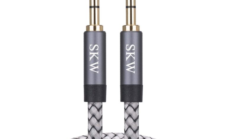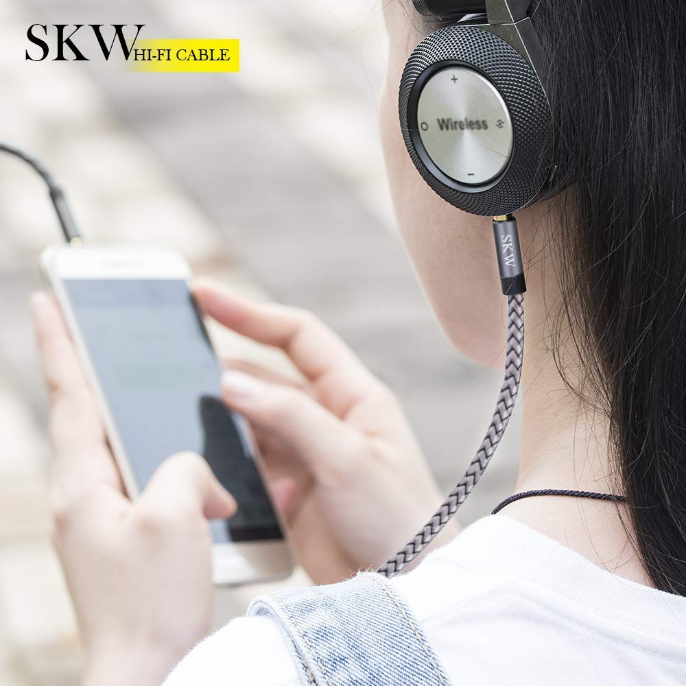 SKW Cable auxiliar para automóvil, cable auxiliar de 3,5 mm a 3,5 mm/cable de conector de audio/cable de auriculares para iPhone, iPod, iPad, Echo Dot, Sony y más, gris, 3 m