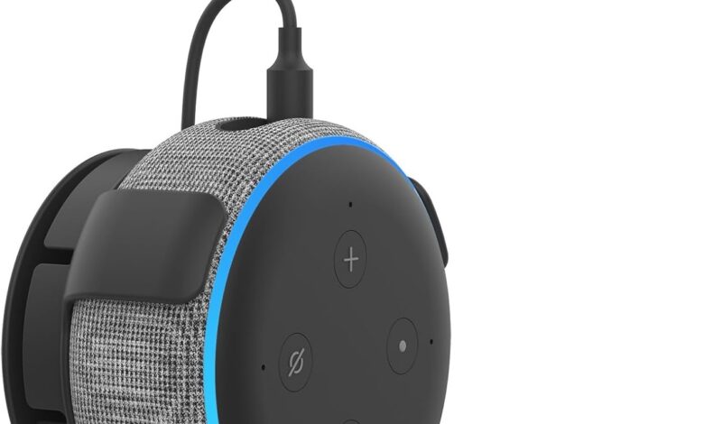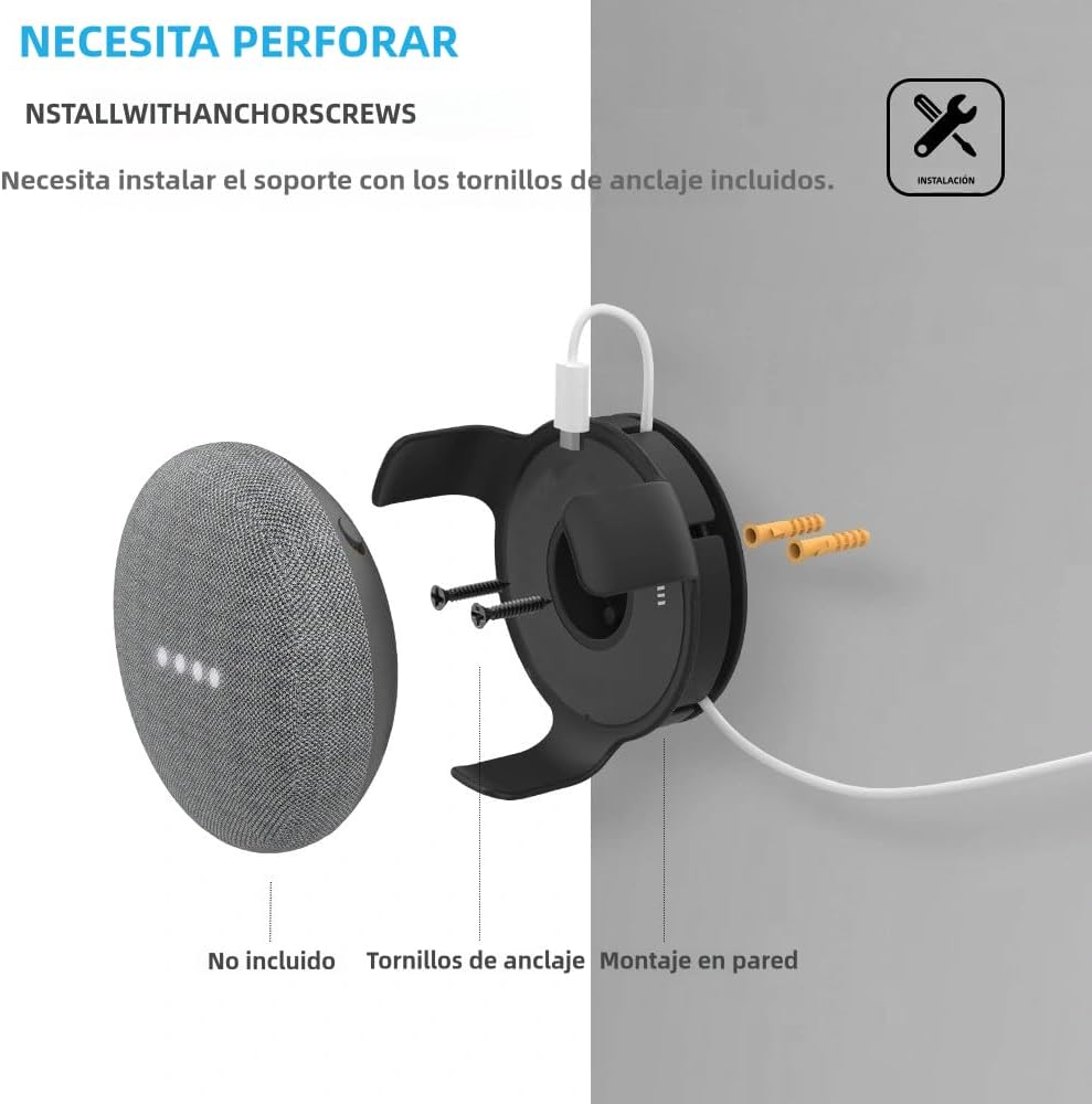 Soporte de Pared para dot3,Accesorio para Altavoz Inteligente con perforar Agujeros,Soporte de Montaje en Pared para Google Home Mini,Gestión de Cables integrada, Soporte Ahorro de Espacio (Negro)