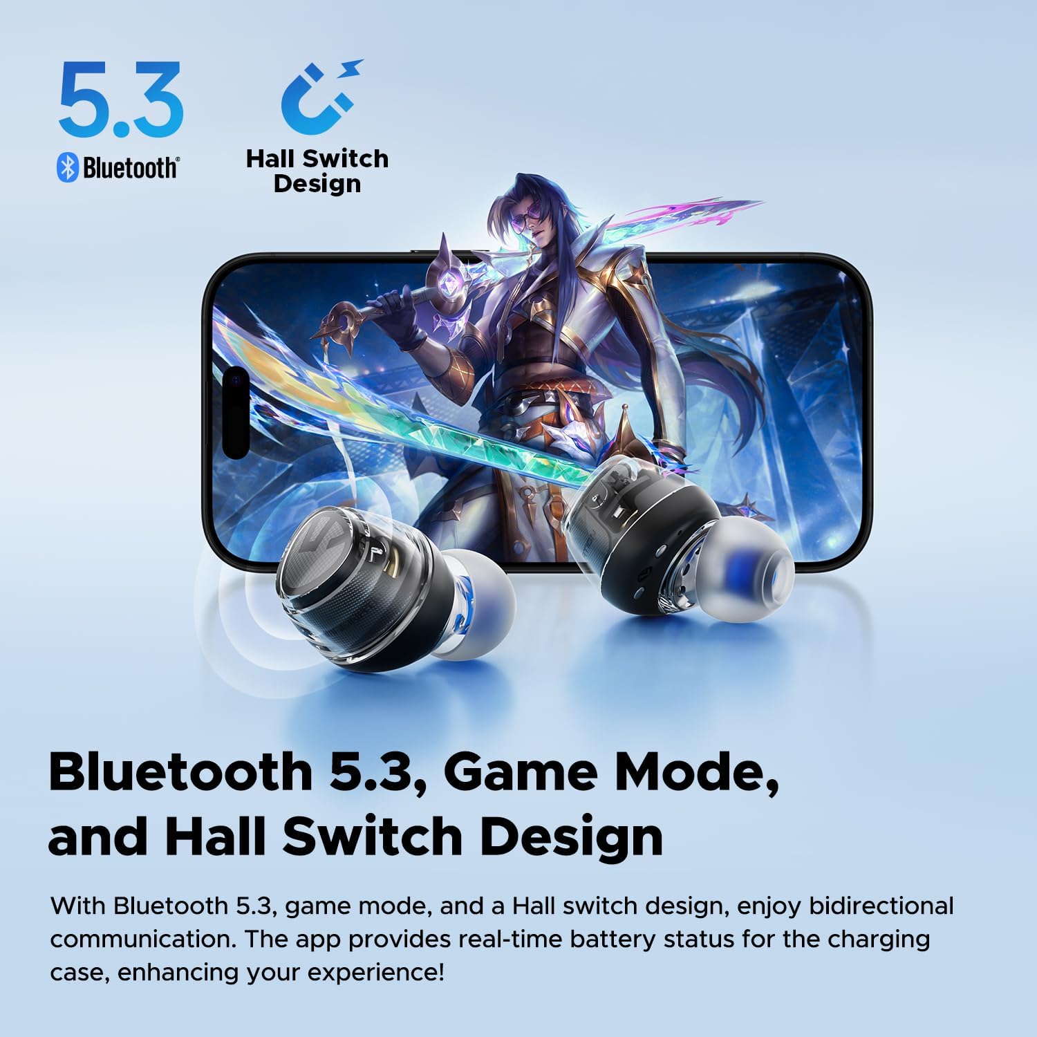 SoundPEATS Clear Dot Audífonos Inalámbricos in-Ear con Micrófono Bluetooth 5.3 Sonido Claro Modo Juego Baja Latencia 27 h de Batería Ligero App PeatsAudio y Estuche con Tapa Transparente