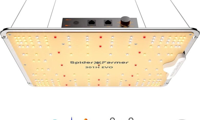 Spider Farmer SF1000, Samsung LM301H EVO – Luz de cultivo LED, luz de planta de espectro completo, regulable y de alta eficiencia y lámparas de penetración más profundas para semillas de inicio de