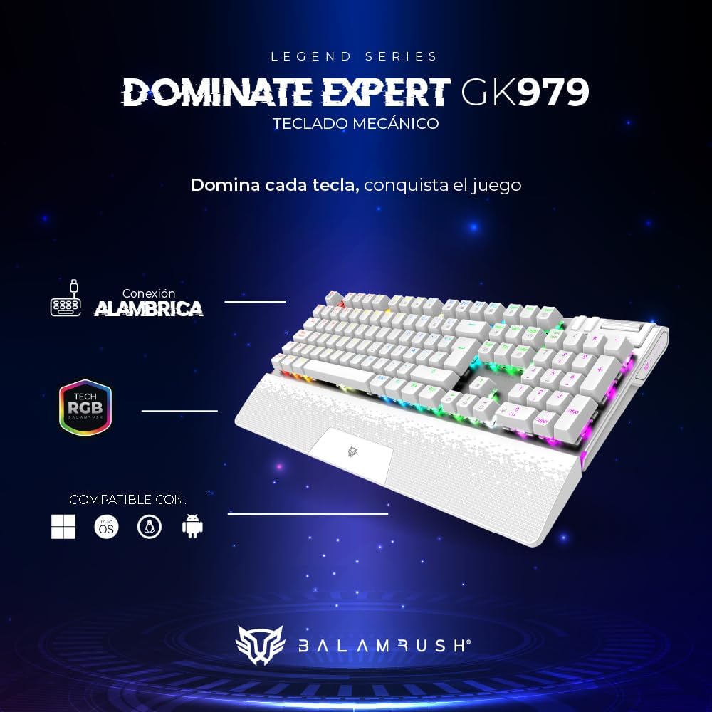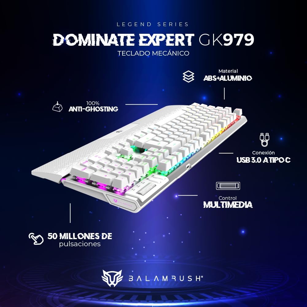 Teclado Gamer Dominate Expert GK979 Alambrico + Mecánico/Swtch MX Rojo + RGB Dinámico/Aluminio/Blanco