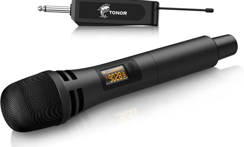 TONOR Micrófono Inalámbrico, Sistema de Micrófono Dinamico de Mano Inalámbrico de Metal UHF con Receptor Recargable, Salida de 1/4″ para Amplificador, Sistema PA, Máquina de Karaoke, 60m, Negro