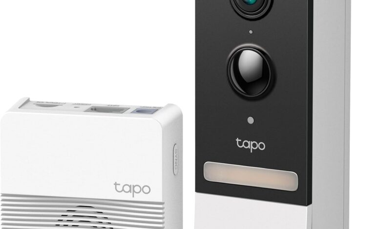 TP-Link Tapo Timbre de Video sin Cable con hub, visión Nocturna de Color de 2K 5MP, batería de hasta 180 días, Audio de 2 vías, Respuesta rápida, Vista de Cabeza a pie, Funciona con Alexa y Google