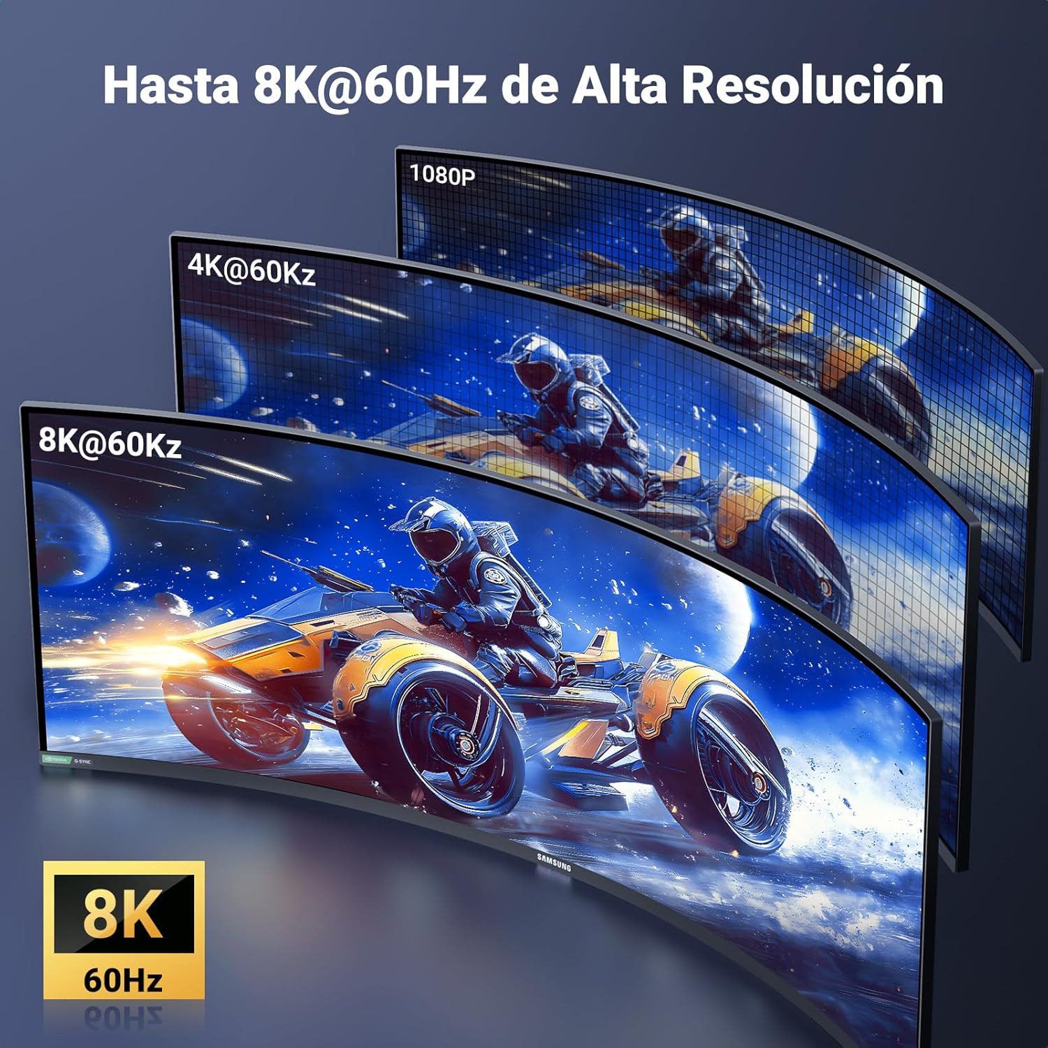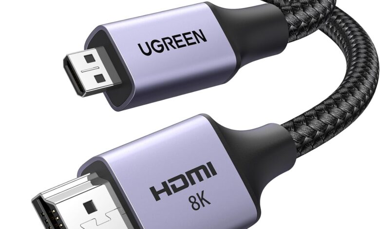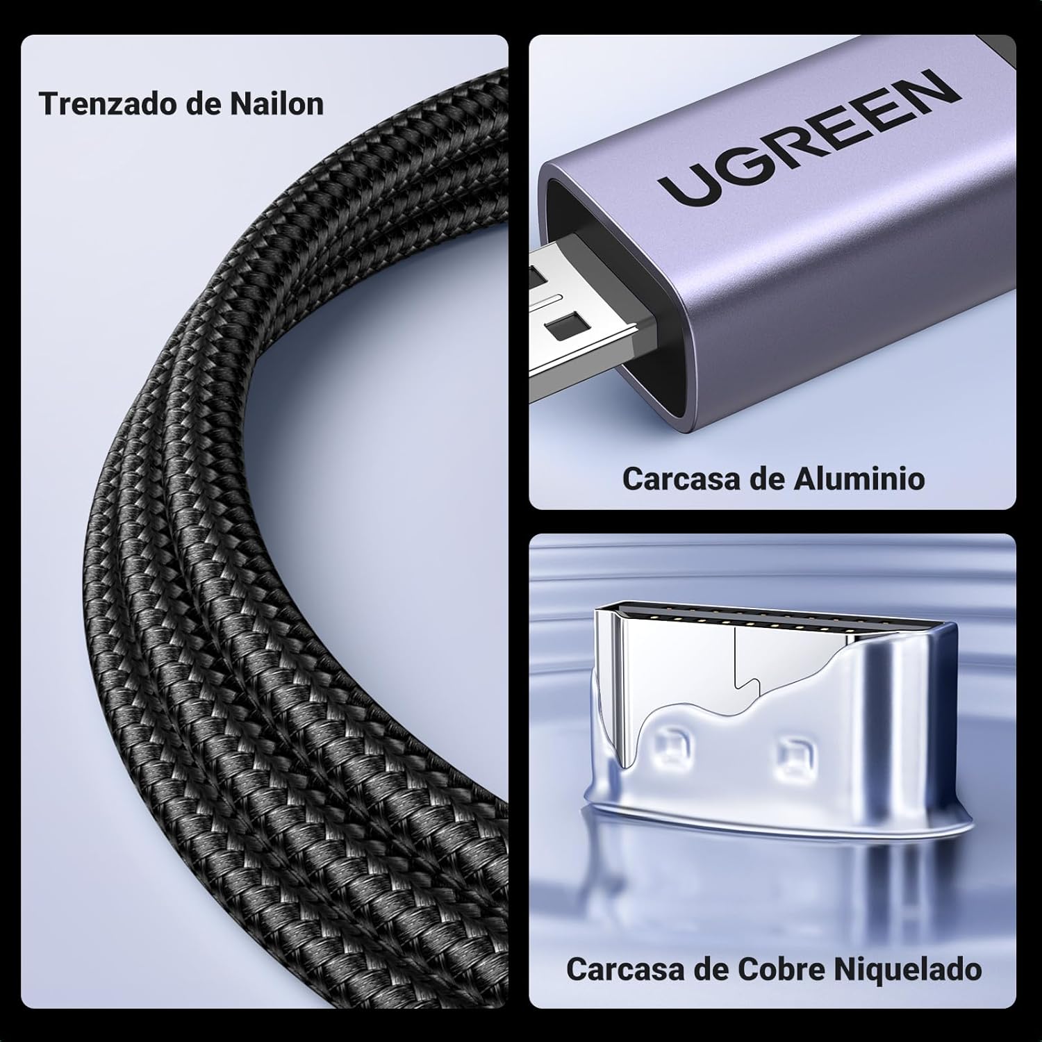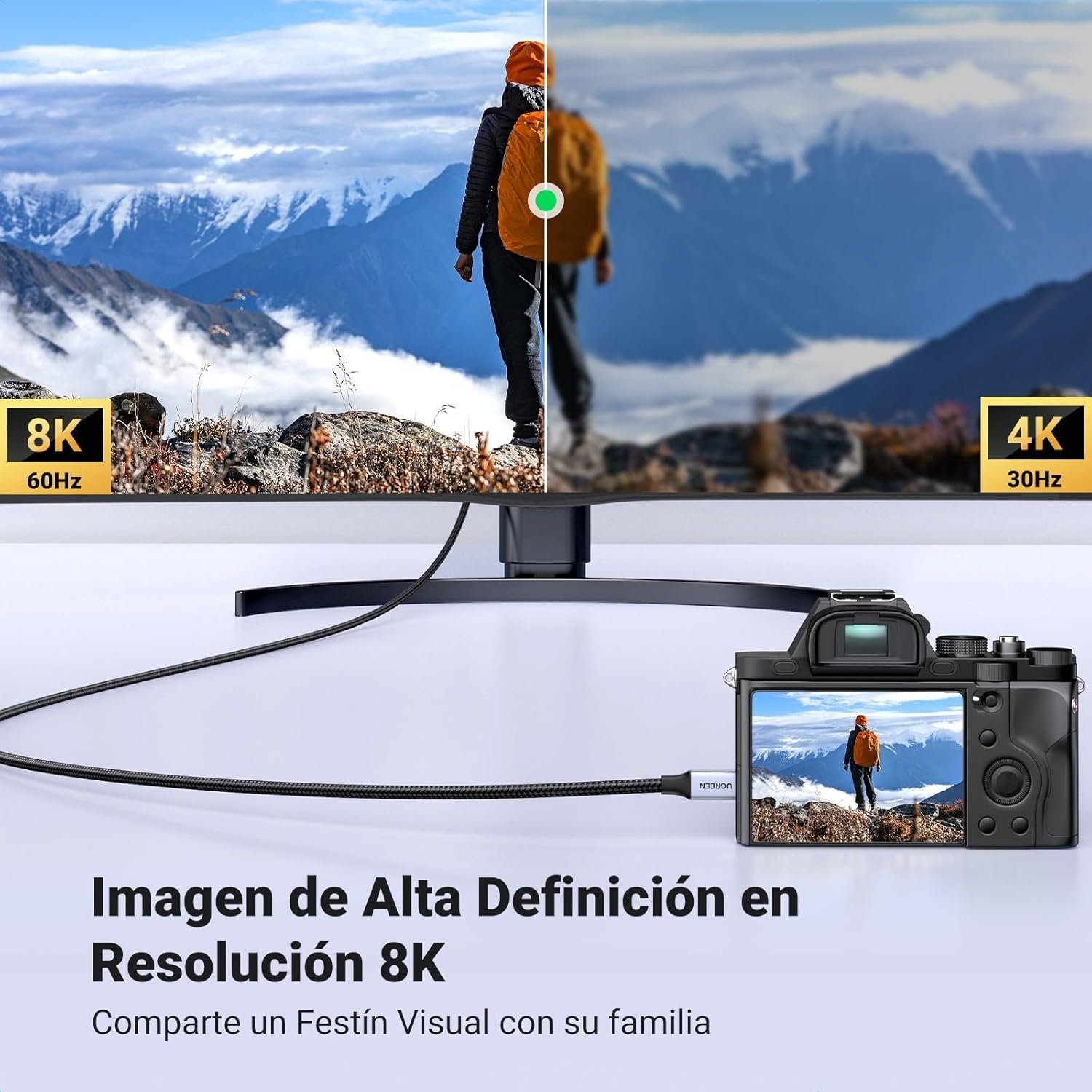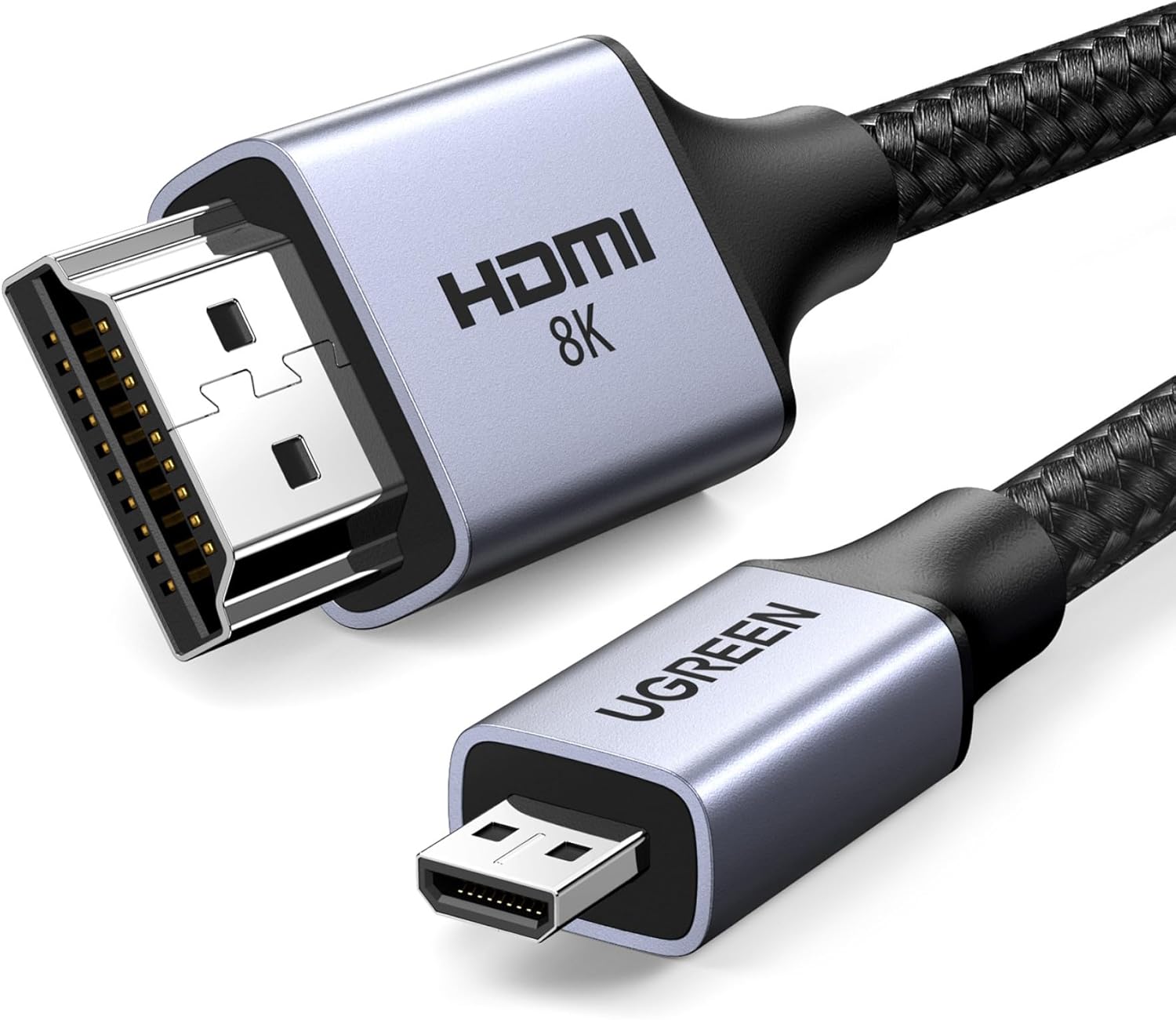 UGREEN 8K Cable Micro HDMI a HDMI 2.1, Carcasa de aluminio trenzado 48Gbps, Alta velocidad 8K@60hz, 4K@120hz Soporta HDR eARC Dolby Compatible con Cámara, Tablet 1M