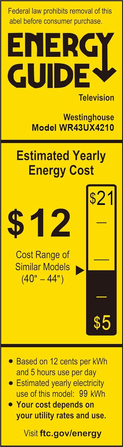 Westinghouse Television de 43” 4K Ultra HD Smart TV HDR Compatible con Netflix, Disney+, Apple TV, Siri, Alexa y Google Assistant (WR43UX4210)