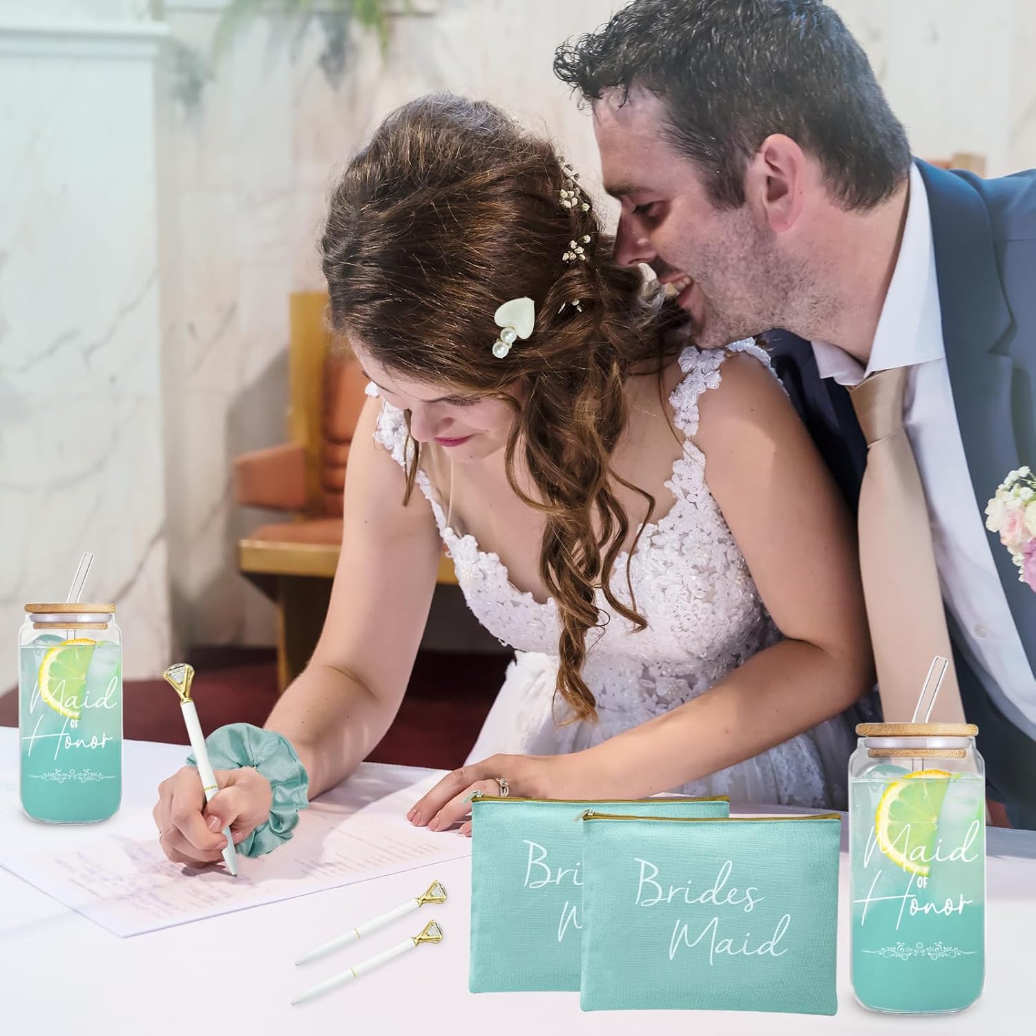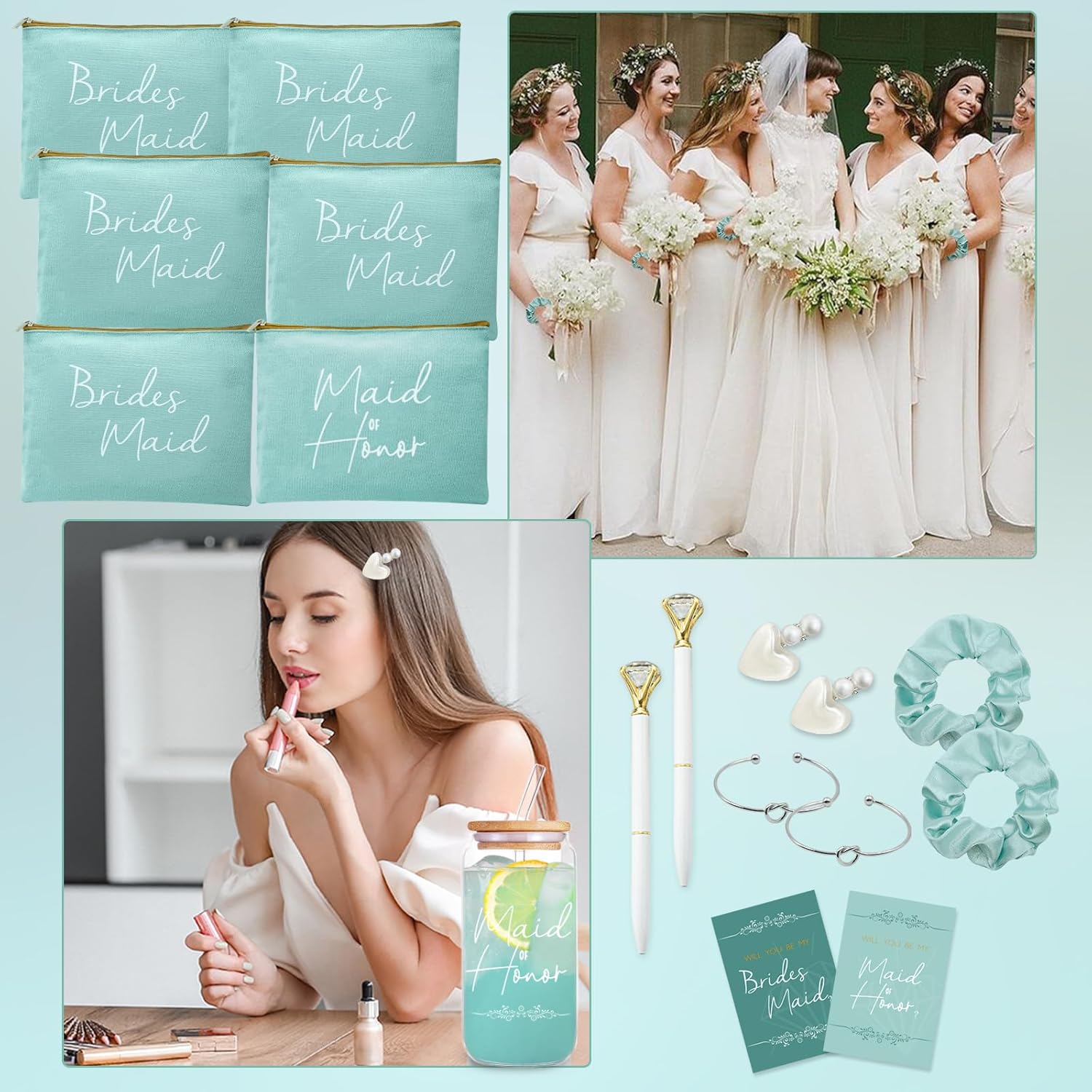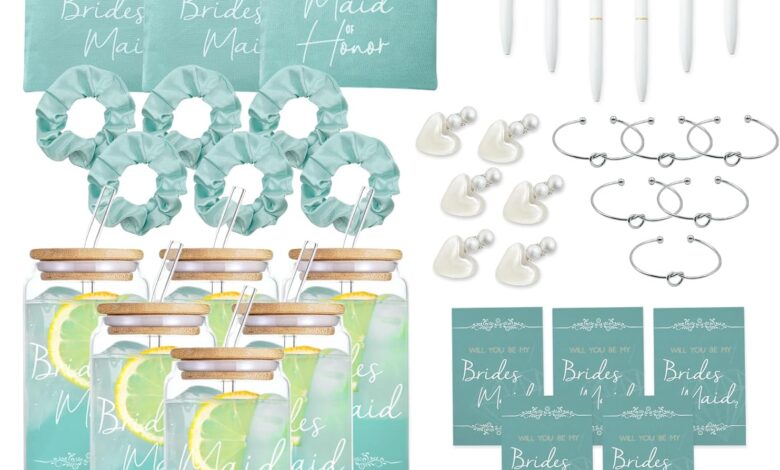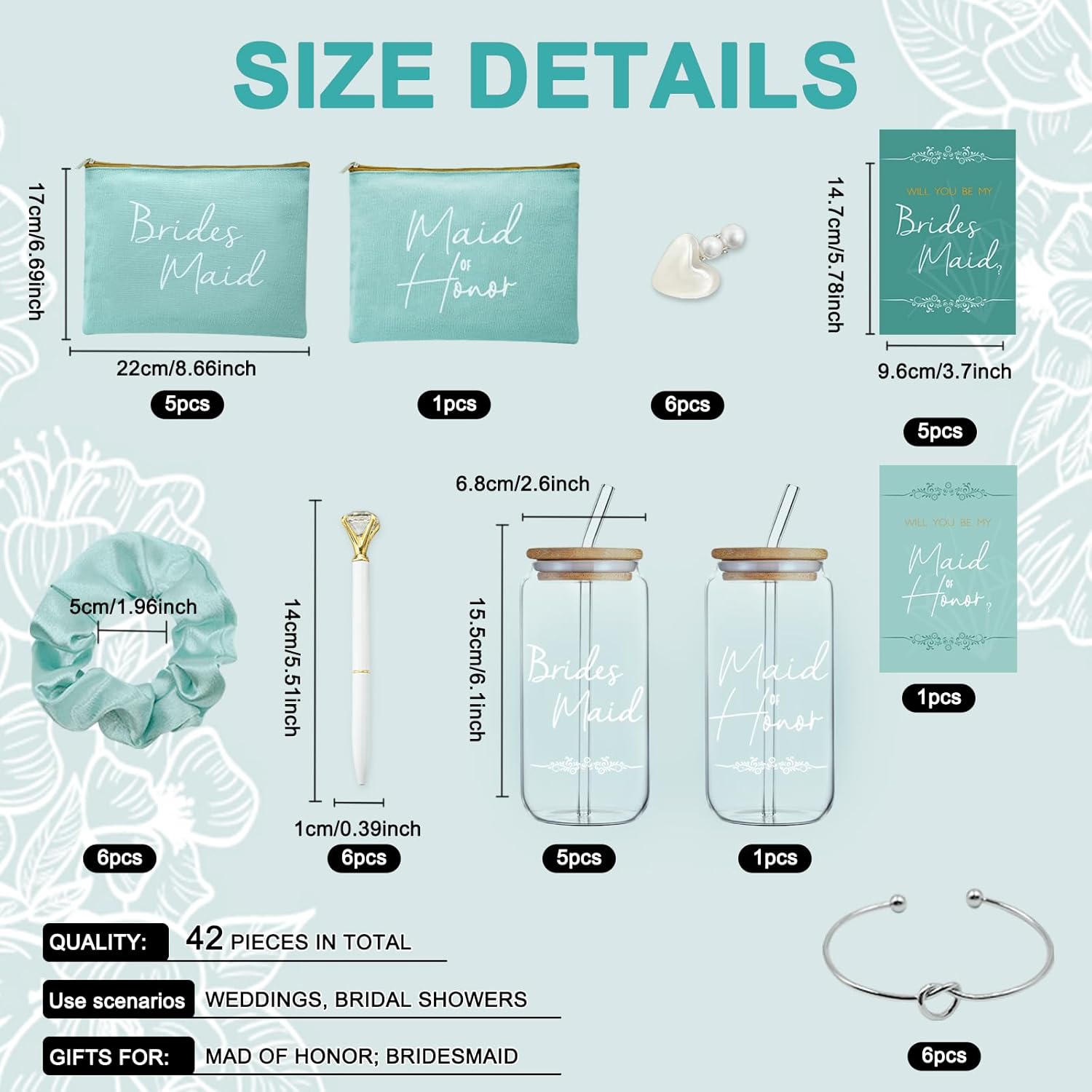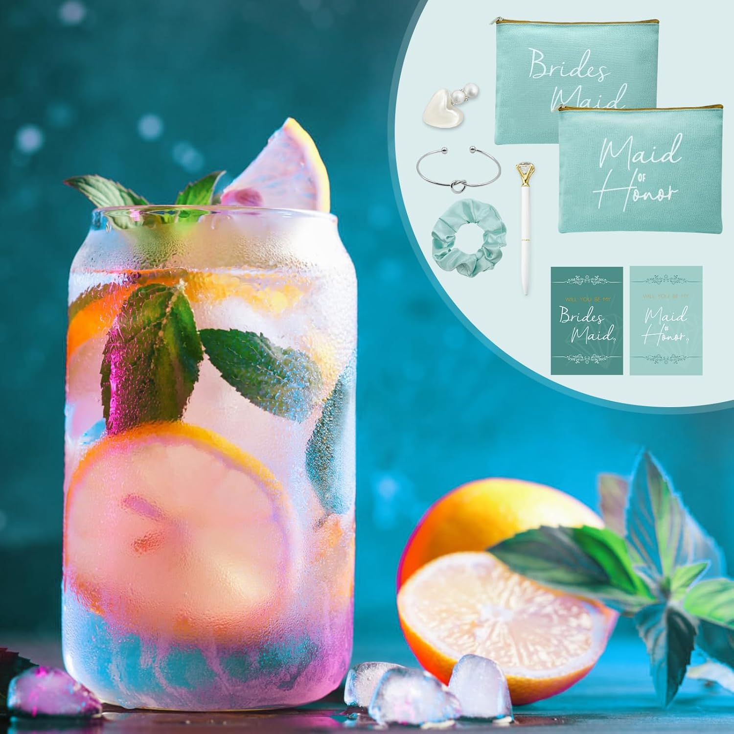 42 regalos de dama de honor para dama de honor, regalos de dama de honor, regalos de dama de honor contienen vasos de vidrio de 16 onzas, bolsas de maquillaje para cosméticos, tarjetas invitadas,